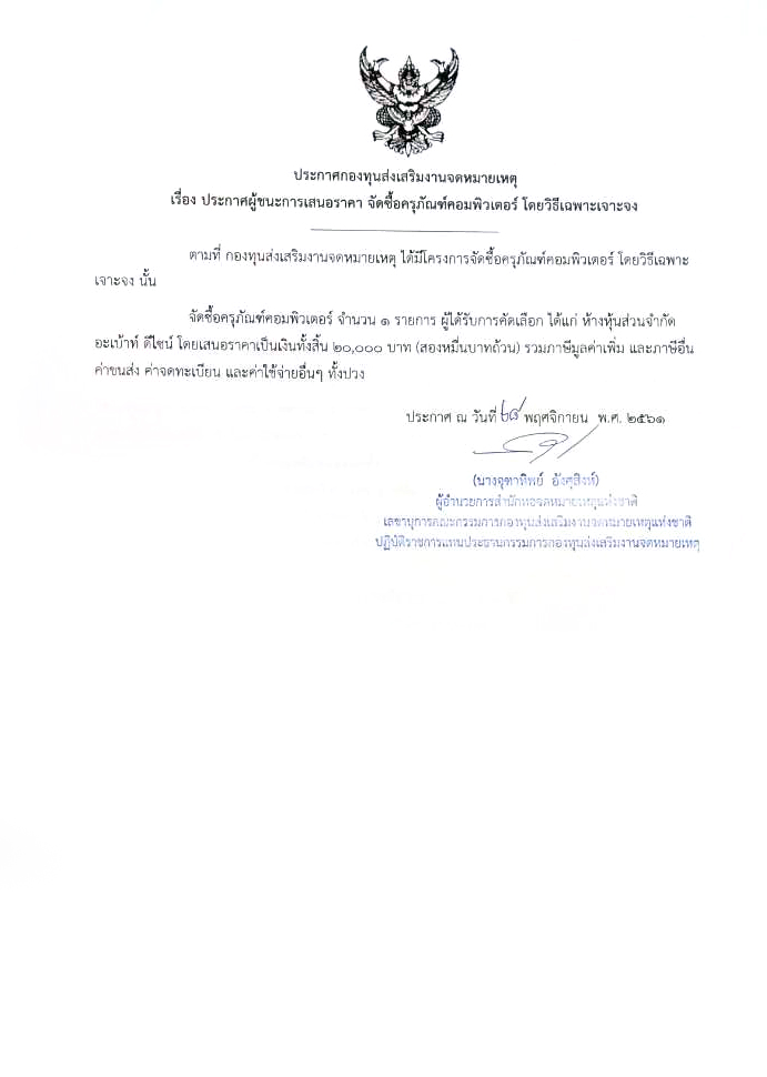 ad ประกาศผู้ชนะการเสนอราคา จัดซื้อครุภัณคอมพิวเตอร์