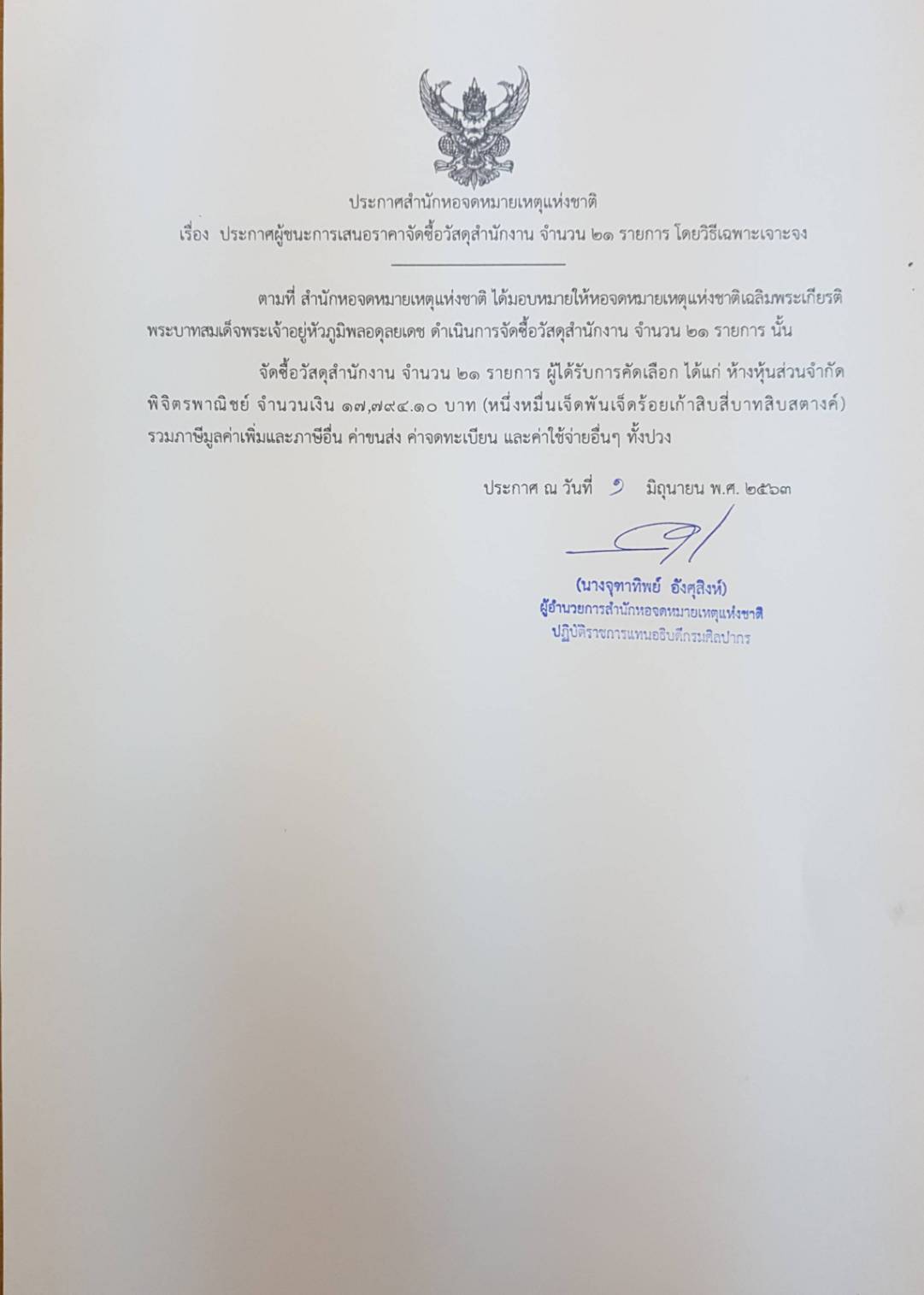 ประกาศผู้ชนะการเสนอราคาจัดซื้อวัสดุสำนักงาน จำนวน ๒๑ รายการ โดยวิธีเฉพาะเจาะจง.jpeg