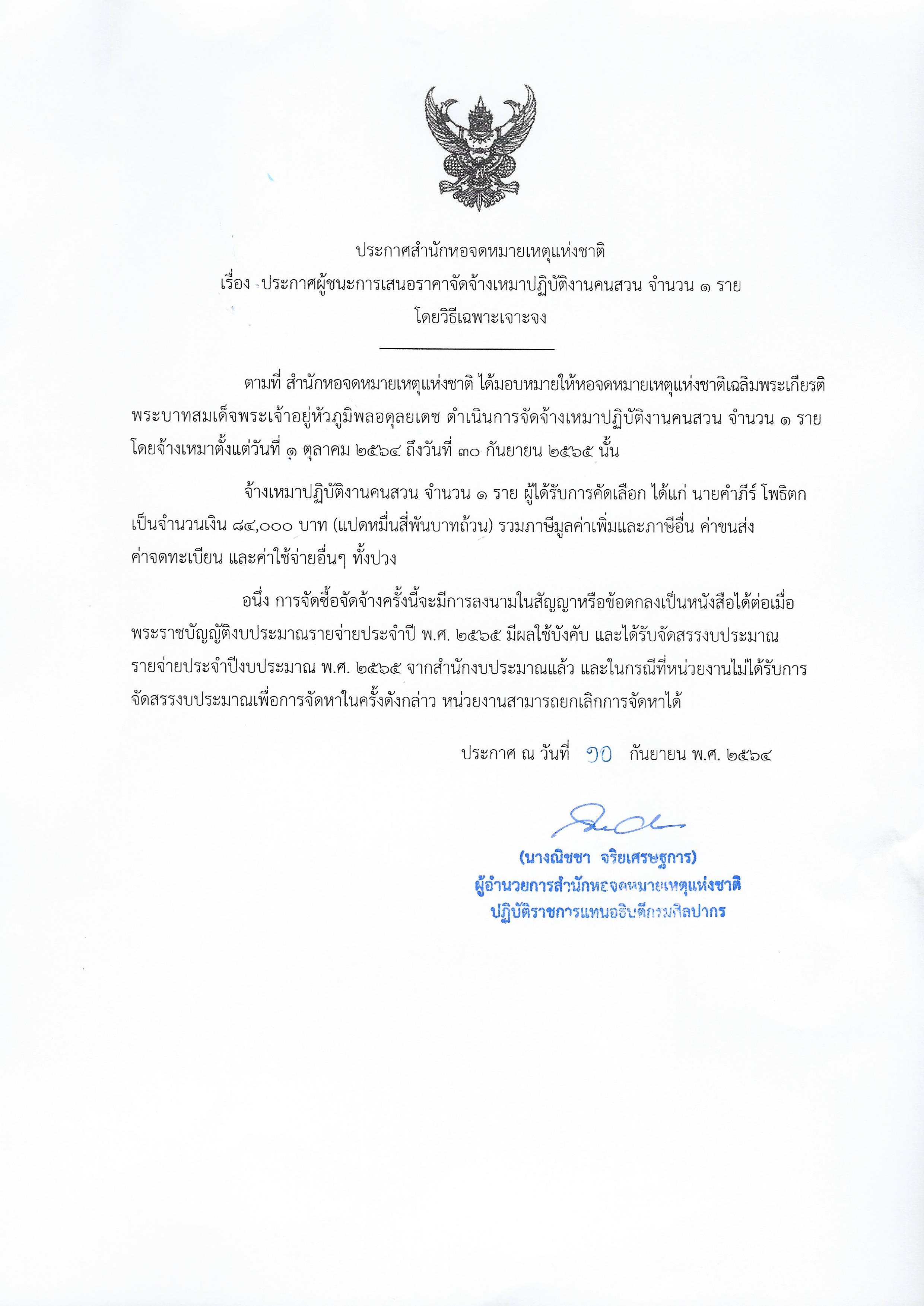 ประกาศสำนักหอจดหมายเหตุแห่งชาติ เรื่อง ประกาศผู้ชนะการเสนอราคาจัดจ้างเหมาปฏิบัติงานคนสวน โดยวิธีเฉพาะเจาะจง_5