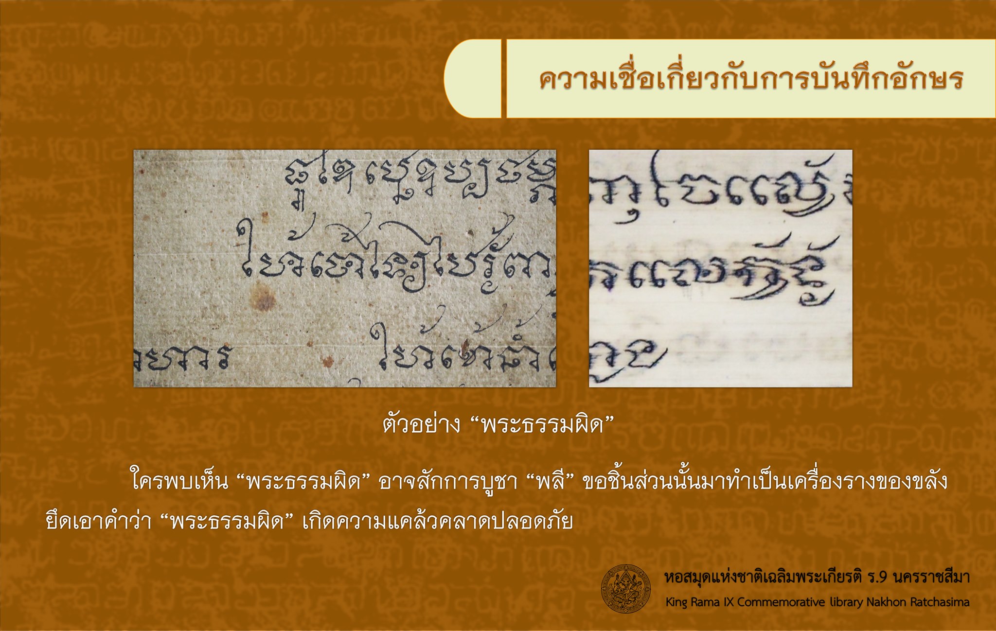 องค์ความรู้ เรื่อง สาระจากเอกสารโบราณ ตอน ความเชื่อเกี่ยวกับการบันทึกอักษร