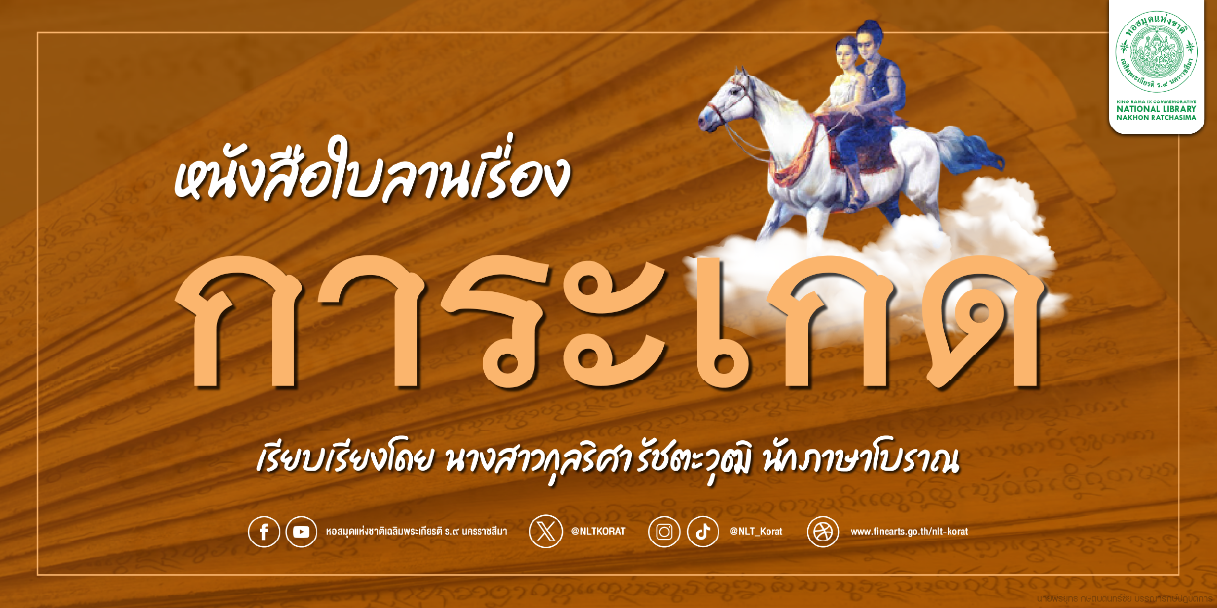 ส่องอักษรดูสาระ นำเสนอและเผยแพร่เกร็ดความรู้ต่าง ๆ จากคำศัพท์ และองค์ความรู้ที่น่าสนใจในเอกสารโบราณที่มีอยู่ ณ #ห้องอีสานศึกษา ของหอสมุดแห่งชาติเฉลิมพระเกียรติ ร.๙ นครราชสีมา วันนี้นักภาษาโบราณจะขอพาไปส่องคำศัพท์ภาษาถิ่นอีสานที่น่าสนใจ ทั้งยังพบมากในเอกสารโบราณประเภทหนังสือใบลานเล่มนี้ ที่มีชื่อเรื่องว่า “การะเกด”