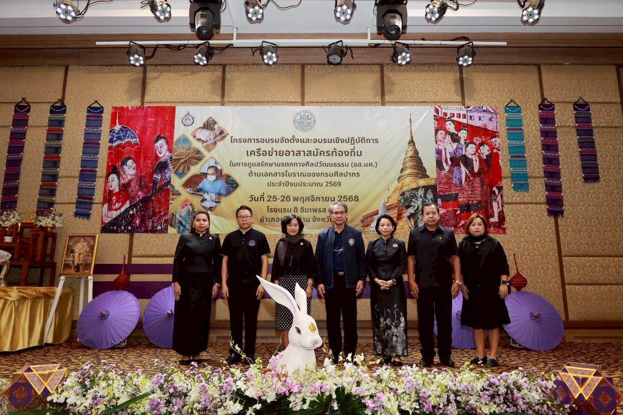 วันที่ 25-26 พฤศจิกายน 2568 นางสาวกุลริศา รัชตะวุฒิ นักภาษาโบราณ ได้รับมอบหมายจากผู้อำนวยการสำนักศิลปากรที่ 10 นครราชสีมา ให้เข้าร่วมโครงการอบรมจัดตั้งและอบรมเชิงปฏิบัติการเครือข่ายอาสาสมัครท้องถิ่นในการดูแลรักษามรดกทางศิลปวัฒนธรรม (อส.มศ.) ด้านเอกสารโบราณของกรมศิลปากร ประจำปีงบประมาณ 2569 จัดขึ้นโดยสำนักศิลปากรที่ 7 เชียงใหม่ ร่วมกับสำนักหอสมุดแห่งชาติ โดยมี นางสาวขนิษฐา โชติกวณิชย์ รองอธิบดีกรมศิลปากร เป็นประธานในพิธีเปิด และนายชินณวุฒิ วิลยาลัย ผู้อำนวยการสำนักศิลปากรที่ 7 เชียงใหม่ เป็นผู้กล่าวรายงาน ณ โรงแรม ดิ อิมเพรส น่าน อำเภอเมืองน่าน จังหวัดน่าน