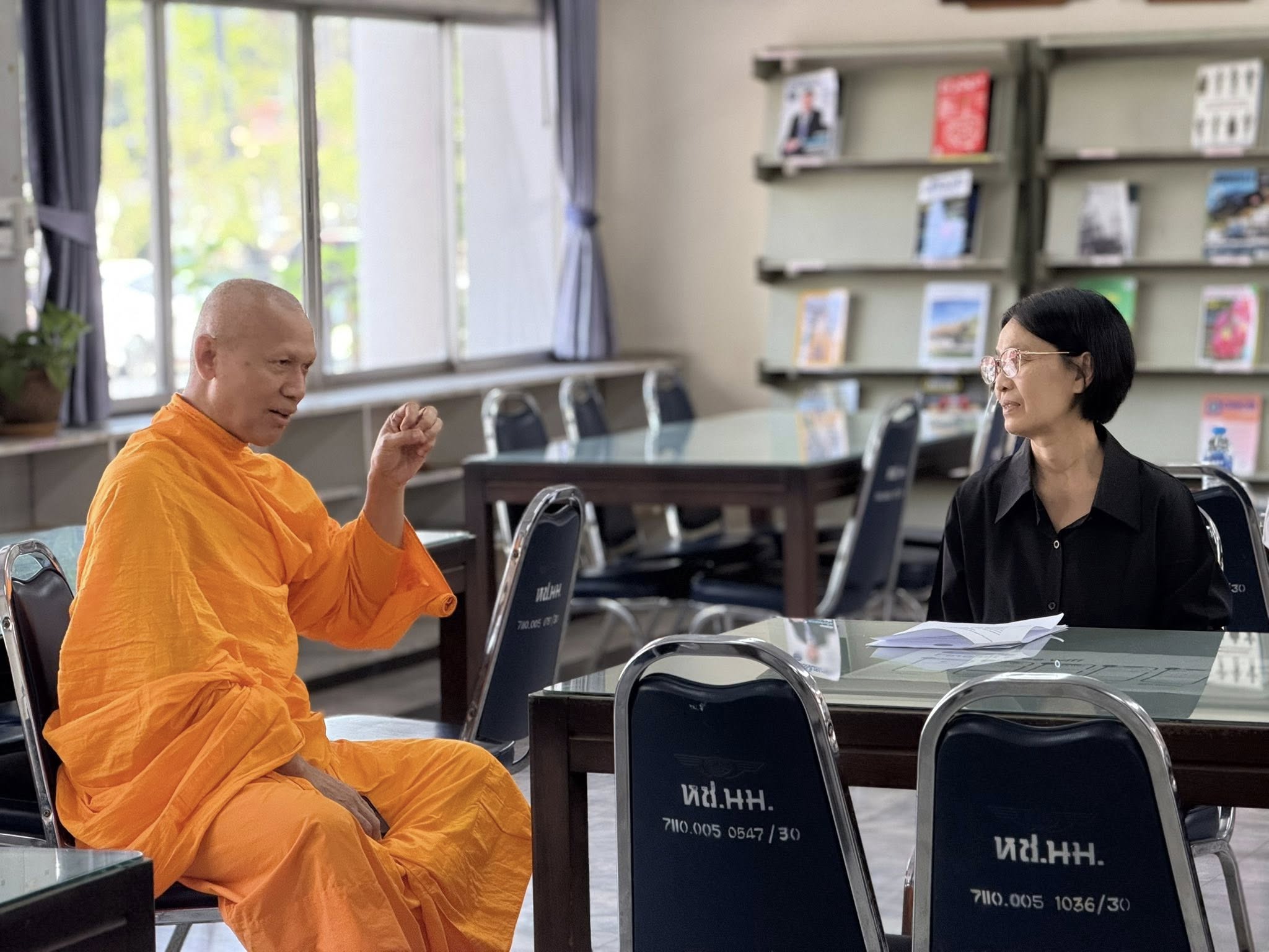 เข้าสัมภาษณ์ นางพัชมณ ศรีสัตย์รสนา ผู้อำนวยการหอสมุดแห่งชาติเฉลิมพระเกียรติ ร.๙ นครราชสีมา เพื่อประชาสัมพันธ์งาน บุญเมืองนครราชสีมา 558 ปี ตักบาตรพระ 10,000 รูป