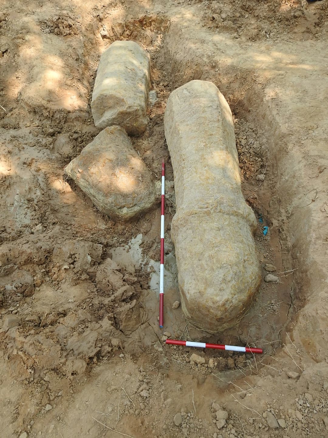 อธิบดีกรมศิลปากร กล่าวว่า จากการตรวจสอบเบื้องต้นของเจ้าหน้าที่ พบว่าหลักหินที่ขุดพบมี ลักษณะเป็นเสาหินทรายแปดเหลี่ยม จำนวน ๒ หลัก ขนาดกว้าง ๕๕ ซม. สูง ๒๑๒ ซม. และ กว้าง ๖๐ ซม. สูง ๑๗๗ ซม. สภาพไม่สมบูรณ์ ส่วนเดือยของหลักหินที่หักออก มีขนาดกว้าง ๔๔ ซม. สูง ๙๒ ซม. ชาวบ้านกุดตาใกล้ ได้ให้ข้อมูลว่า ก่อนหน้านี้จมดินอยู่โดยโผล่พ้นดินขึ้นมาบางส่วน หลังจากนั้นมีการนำดินขุดสระมาถม แต่ยังเป็นที่รับรู้ของคนในชุมชนว่ายังมีหลักหินอยู่ในจุดดังกล่าว จนกระทั่งได้ขุดเปิดพื้นที่และพบหลักหินทั้งสองหลักนี้อีกครั้ง โดยตนได้สั่งการให้สำนักศิลปากรที่ ๙ อุบลราชธานี เก็บข้อมูลรายละเอียดพร้อมจัดทำแผนผังที่พบ เพื่อดำเนินการขุดค้นทางโบราณคดีต่อไป