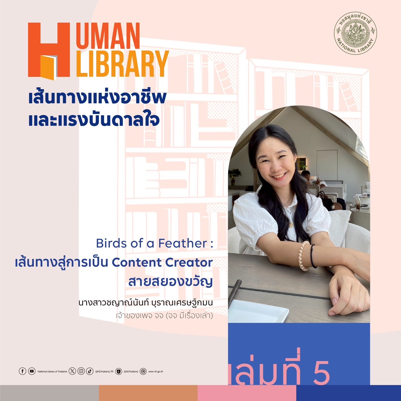 หอสมุดแห่งชาติ ขอเชิญร่วมกิจกรรม "Human Library: เส้นทางแห่งอาชีพและแรงบันดาลใจ" พบกับ Human Book จากหลากหลายสาขาอาชีพ ที่จะมาแบ่งปันประสบการณ์ จุดเริ่มต้น แรงบันดาลใจ และบทเรียนที่ไม่มีในตำรา ร่วมฟังตัวจริงเล่าเรื่องจริงจากสายอาชีพหลากหลาย เปิดโลก เปิดมุมมอง และค้นหา "ตัวคุณ" ไปพร้อมกัน ในพฤหัสบดีที่ 8 พฤษภาคม 2568 ณ ห้องบริการหนังสือทั่วไป อาคาร 1ชั้น 2 หอสมุดแห่งชาติ เวลา 08.30 - 15.00 น.