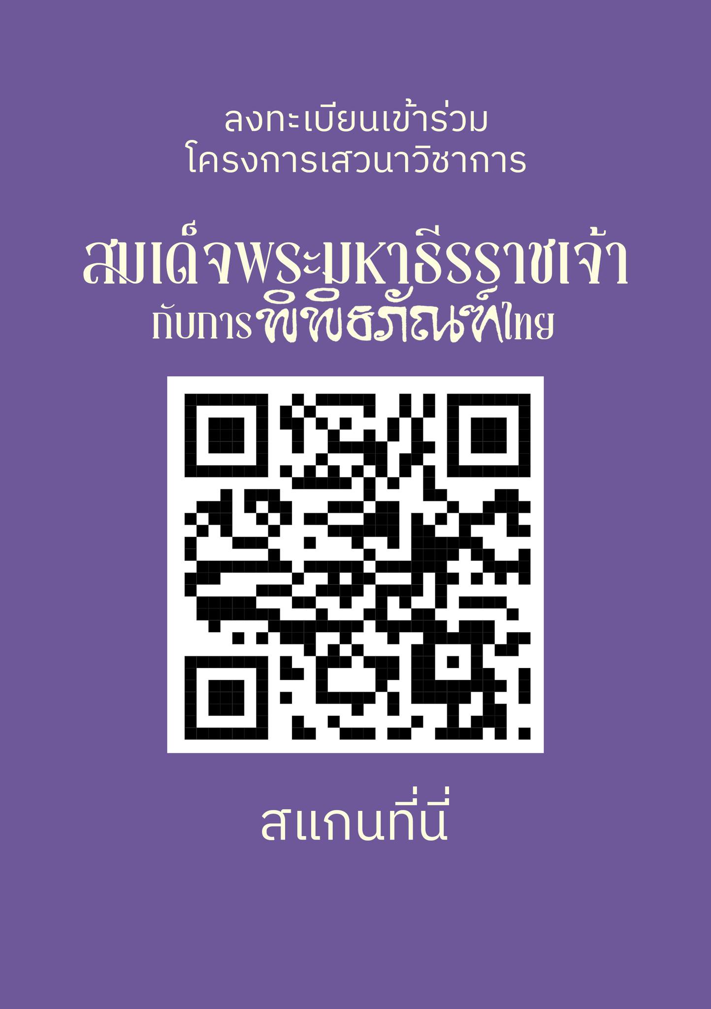 พิพิธภัณฑสถานแห่งชาติ พระนคร จัดโครงการเสวนาวิชาการ เรื่อง “สมเด็จพระมหาธีรราชเจ้ากับการพิพิธภัณฑ์ไทย” วันที่ ๒๑ - ๒๒ มิถุนายน ๒๕๖๘ เวลา ๐๙.๐๐ - ๑๖.๐๐ น. ณ ห้องประชุมอาคารดำรงราชานุภาพ พิพิธภัณฑสถานแห่งชาติ พระนคร ผู้สนใจร่วมฟังการเสวนา สามารถสำรองที่นั่ง โดยสแกน QR Code หรือกดลิงค์ที่นี่ https://forms.gle/r6ncQaUGfSR5ANLU7 สอบถามรายละเอียดเพิ่มเติม ฝ่ายวิชาการ พิพิธภัณฑสถานแห่งชาติ พระนคร โทร. ๐๙ ๕๗๙๓ ๑๒๓๒ Facebook: Education.National Museum Bangkok เที่ยวพิพิธภัณฑสถานแห่งชาติ พระนคร ---------------------------------------------------