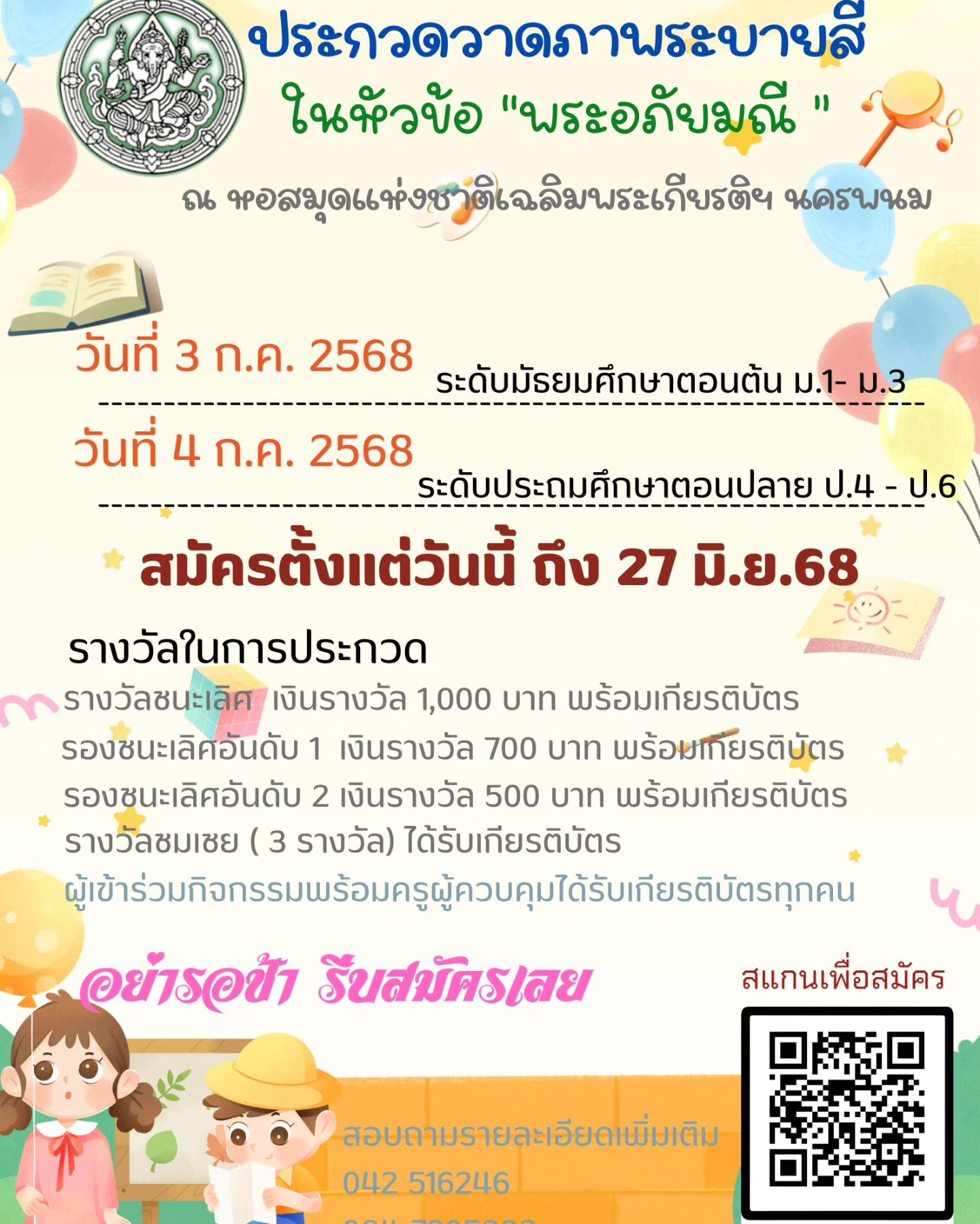 ขอเชิญชวนเด็กๆ ประกวดวาดภาพระบายสี หัวข้อ “พระอภัยมณี” เปิดรับสมัครจนถึงวันที่ ๒๗ มิถุนายน ๒๕๖๘