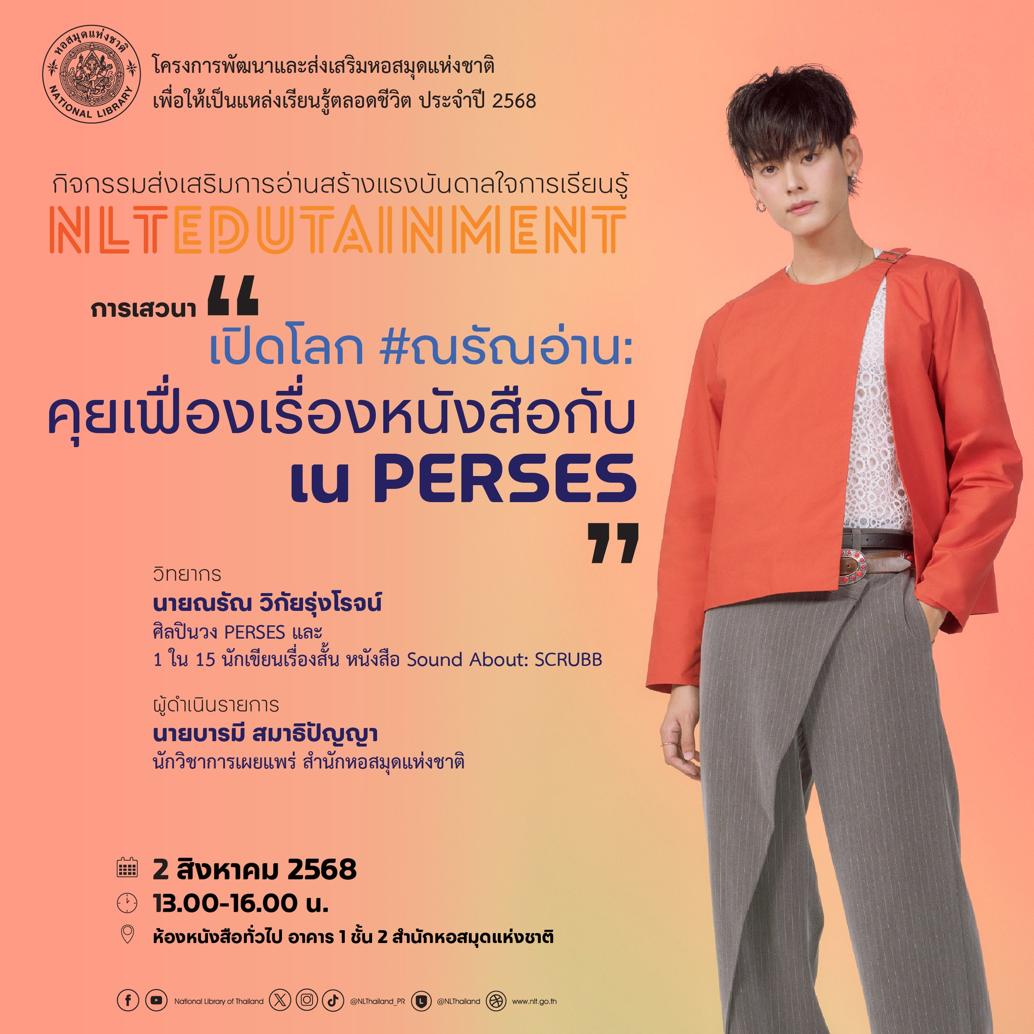 ขอเชิญร่วมกิจกรรม NLT Edutainment ในหัวข้อ “เปิดโลก #ณรัณอ่าน: คุยเฟื่องเรื่องหนังสือ กับเน PERSES”