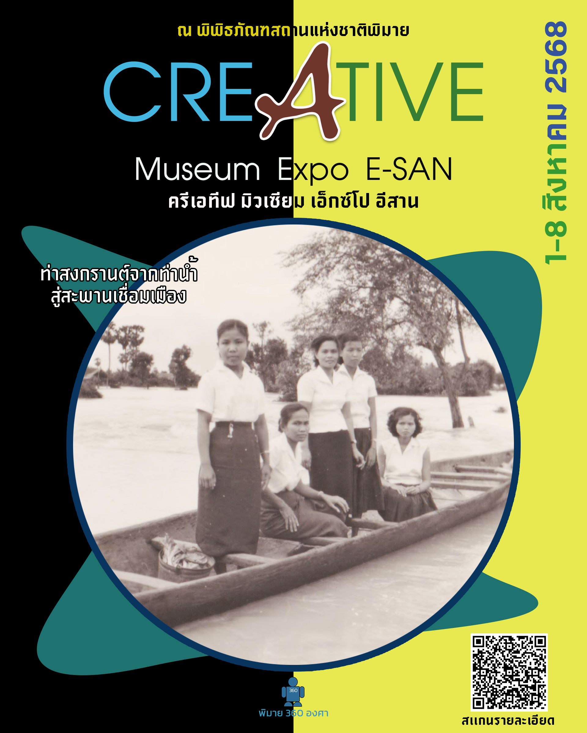 พิพิธภัณฑสถานแห่งชาติ พิมาย จังหวัดนครราชสีมา ขอเชิญเที่ยวงานเทศกาลเครือข่ายพิพิธภัณฑ์สร้างสรรค์ ประจำปี ๒๕๖๘ Creative Museum Expo E-San @พิพิธภัณฑสถานแห่งชาติ พิมาย ระหว่างวันที่ ๑ - ๘ สิงหาคม ๒๕๖๘ พบกับการออกบูธกิจกรรมจากพิพิธภัณฑ์และแหล่งเรียนรู้ทั่วภาคอีสาน และโรงเรียนต่าง ๆ ในจังหวัดนครราชสีมา และยังมีกิจกรรมต่าง ๆ มากมาย อาทิ - นิทรรศการพิเศษ "ท่าสงกรานต์...จากท่าน้ำสู่สะพานเชื่อมเมือง"