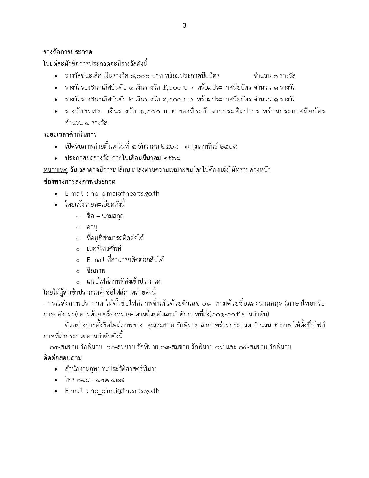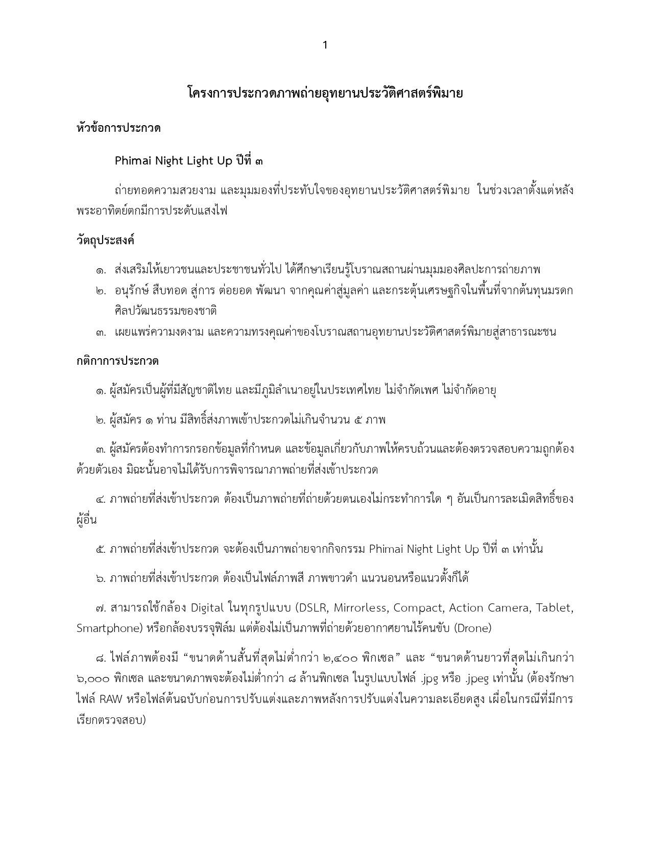 กรมศิลปากร ขอเชิญชวนประชาชนส่งภาพถ่ายเข้าร่วมประกวด โครงการประกวดภาพถ่ายอุทยานประวัติศาสตร์พิมาย ในหัวข้อ " Phimai Night Light Up" ชิงเงินรางวัลรวมกว่า 20,000.-บาท เปิดรับภาพถ่าย ตั้งแต่บัดนี้เป็นต้นไป จนถึงวันที่ 7 กุมภาพันธ์ 2569 โดยจะประกาศผลการประกวดภายในเดือนมีนาคม 2569 ผู้สนใจร่วมส่งภาพถ่ายเข้าประกวด สามารถอ่านรายละเอียดและกติกาการประกวด ดังต่อไปนี้.jpg)
