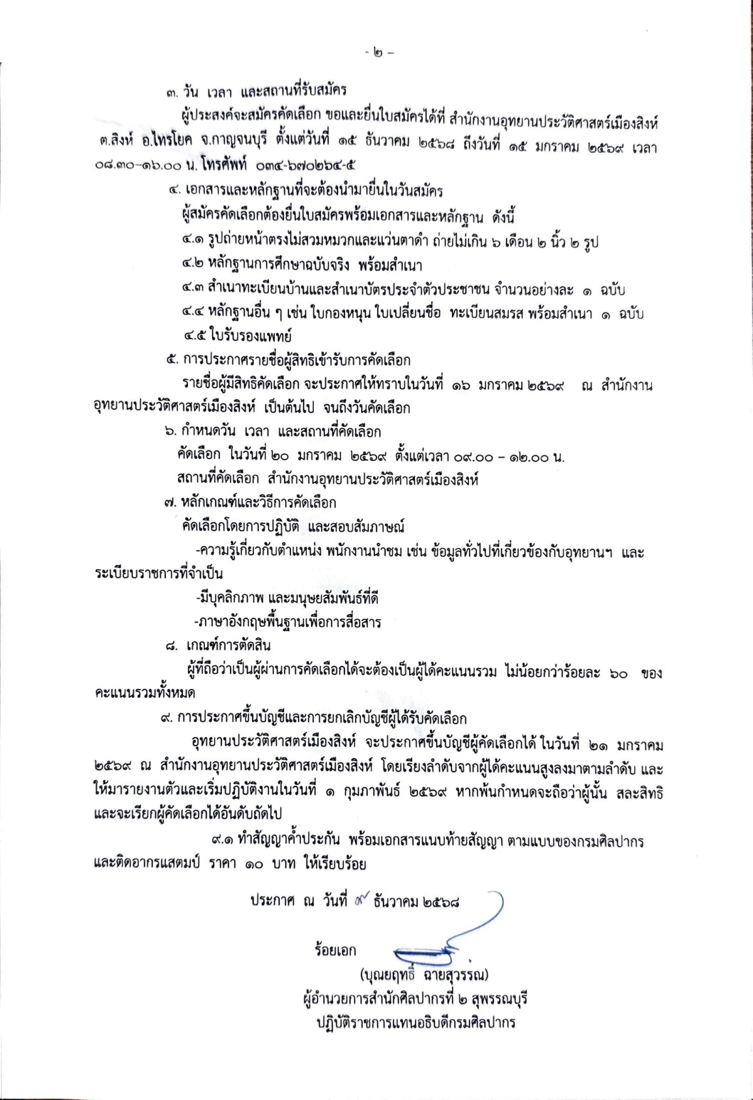 อป.เมืองสิงห์ เปิดรับสมัครงาน ตำแหน่งพนักงานนำชม จนถึง 15 ม.ค. 2569