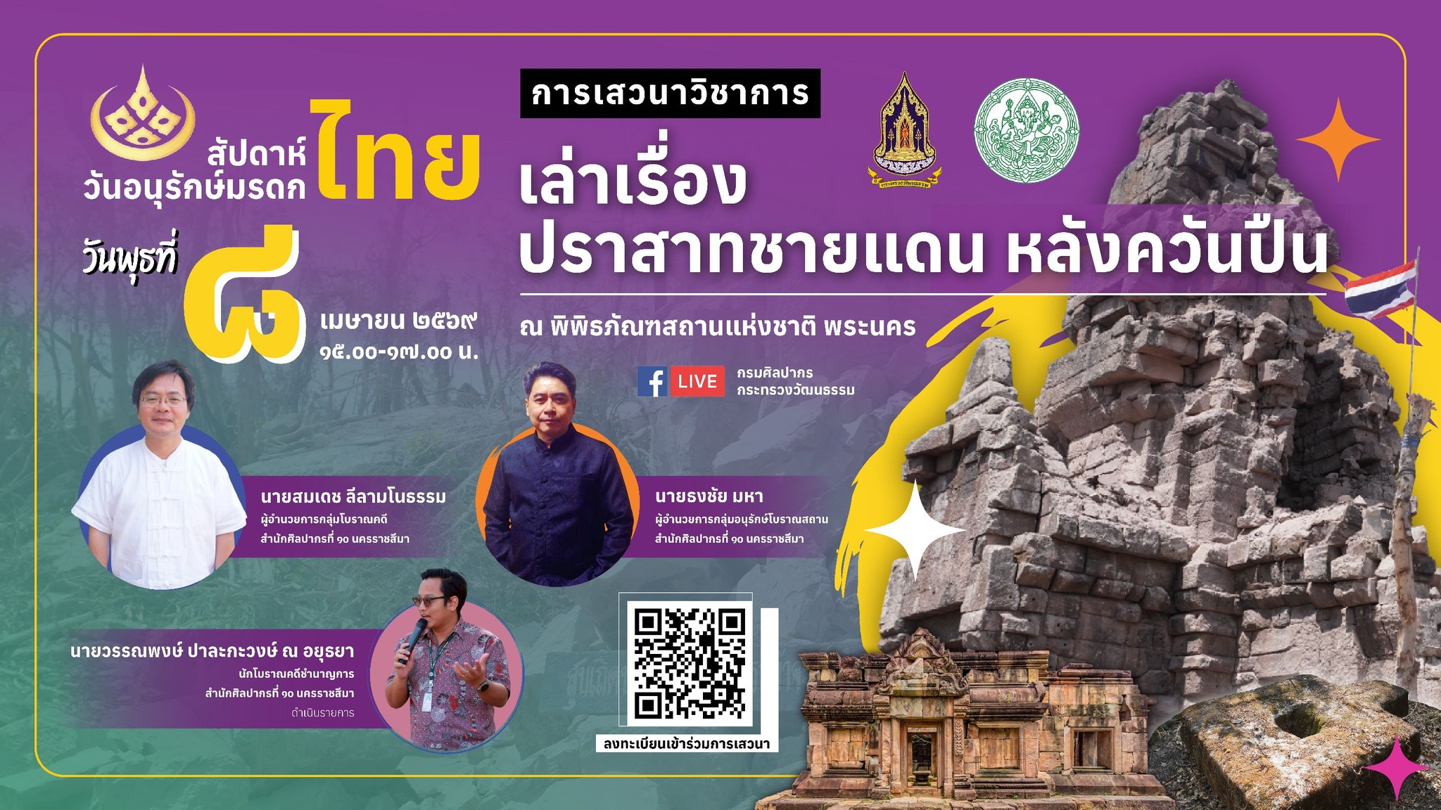 ขอเชิญฟังเสวนาวิชาการ เนื่องในสัปดาห์วันอนุรักษ์มรดกไทย วันที่ ๔ - ๘ เมษายน ๒๕๖๙