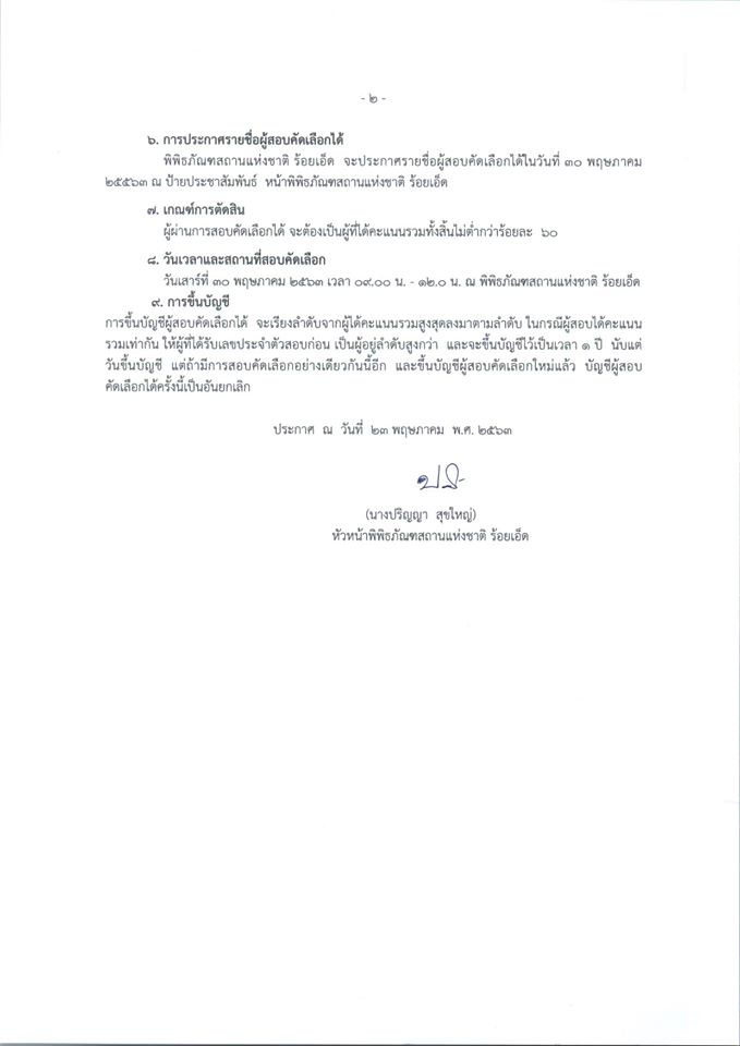 พิพิธภัณฑสถานแห่งชาติ ร้อยเอ็ด รับสมัครงานจ้างเหมาบริการตำแหน่งพนักงานทำความสะอาด จำนวน ๑ อัตรา
