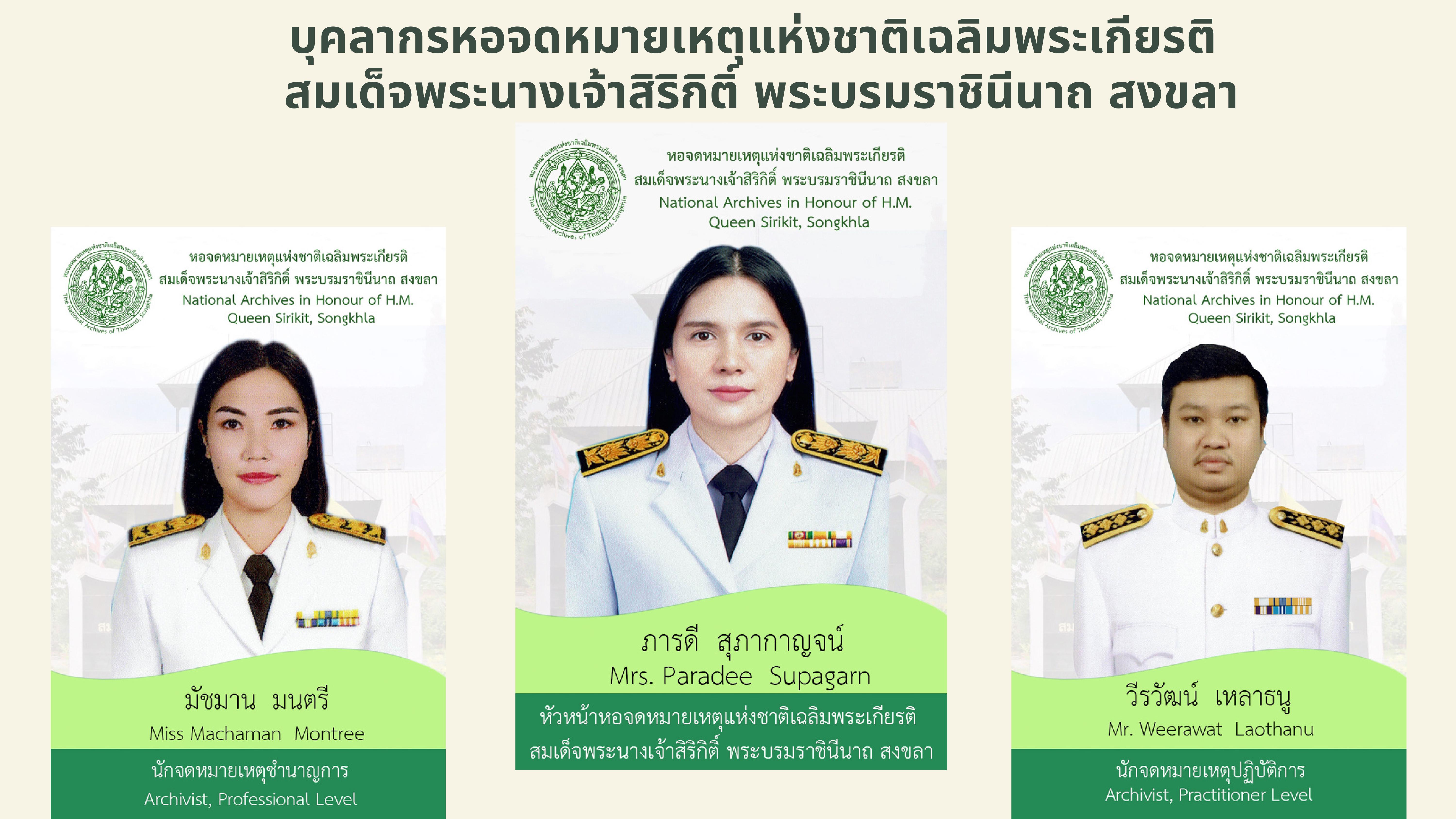 พุทธศักราช ๒๕๕๗ : ผู้อนุรักษ์มรดกไทยดีเด่น และผู้สนับสนุนมรดกศิลปวัฒนธรรมของชาติ ๒๕๕๖ (เสนอรายชื่อโดยหอจดหมายเหตุแห่งชาติเฉลิมพระเกียรติฯ สงขลา) เข้ารับพระราชทานเข็มเกียรติคุณวันอนุรักษ์มรดกไทย วันศุกร์ที่ ๓ มกราคม ๒๕๕๗ ณ พระที่นั่งอิศราวินิจฉัย พิพิธภัณฑสถานแห่งชาติ พระนคร