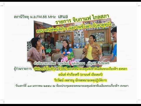คณะจากหอจดหมายเหตุแห่งชาติเฉลิมพระเกียรติ สมเด็จพระนางเจ้าสิริกิติ์ พระบรมราชินีนาถ สงขลา ประชาสัมพันธ์กิจกรรมคืนความสุขให้กับประชาชน "เเลภาพข้างฝา จับตาดูหนัง" ในรายการ ปักษ์ใต้ บ้านเรา ดำเนินรายการโดย คุณบรรจง ชอบเเต่ง วันที่ ๑๖ มกราคม ๒๕๕๘ ณ สถานีวิทยุกระจายเสียงแห่งประเทศไทย จังหวัดสงขลา FM 90.50 MHz