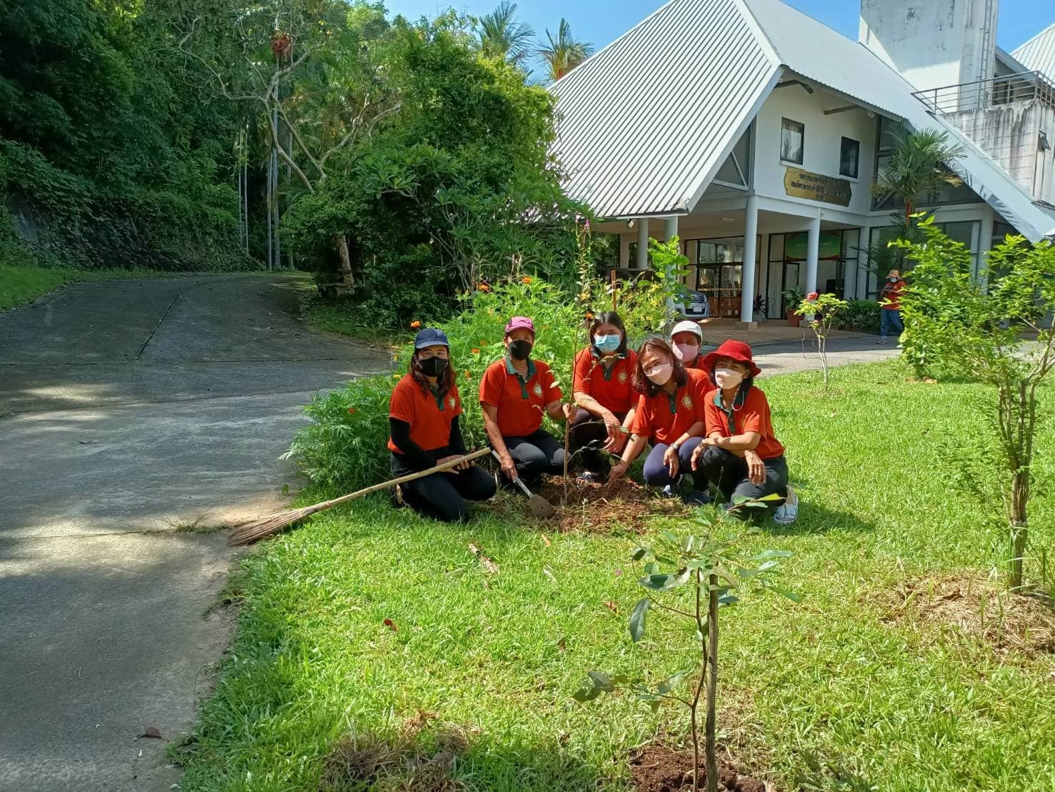 จัดกิจกรรมปลูกต้นไม้บริเวณพื้นที่ด้านหน้าของหน่วยงาน และพัฒนาทำความสะอาดโดยรอบอาคาร เนื่องในโอกาสมหามงคลพระราชพิธีบรมราชาภิเษก