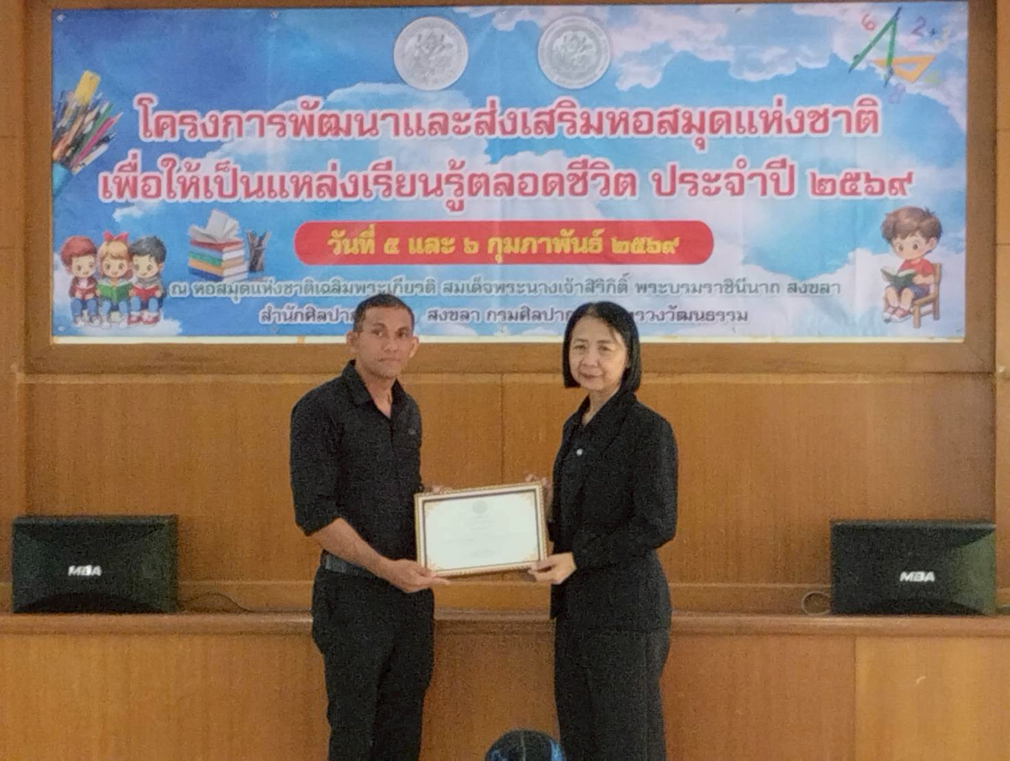 วันที่ ๕ กุมภาพันธ์ ๒๕๖๙ หอสมุดแห่งชาติเฉลิมพระเกียรติ สมเด็จพระนางเจ้าสิริกิติ์ พระบรมราชินีนาถ สงขลา จัดโครงการพัฒนาและส่งเสริมหอสมุดแห่งชาติเพื่อให้เป็นแหล่งเรียนรู้ตลอดชีวิต ประจำปี ๒๕๖๙ กิจกรรมส่งเสริมการอ่าน นักเรียนโรงเรียนวัดหินเกลี้ยงชั้นประถมศึกษาปีที่ ๔-๖ ณ หอสมุดแห่งชาติเฉลิมพระเกียรติฯ สงขลา
