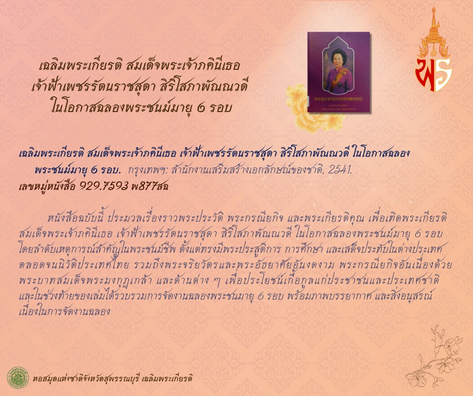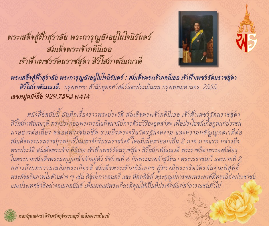 หอสมุดแห่งชาติจังหวัดสุพรรณบุรี เฉลิมพระเกียรติ จัดกิจกรรมส่งเสริมการอ่านตามรอยพระจริยวัตรสมเด็จพระเจ้าภคินีเธอ เจ้าฟ้าเพชรรัตนราชสุดา สิริโสภาพัณณวดี