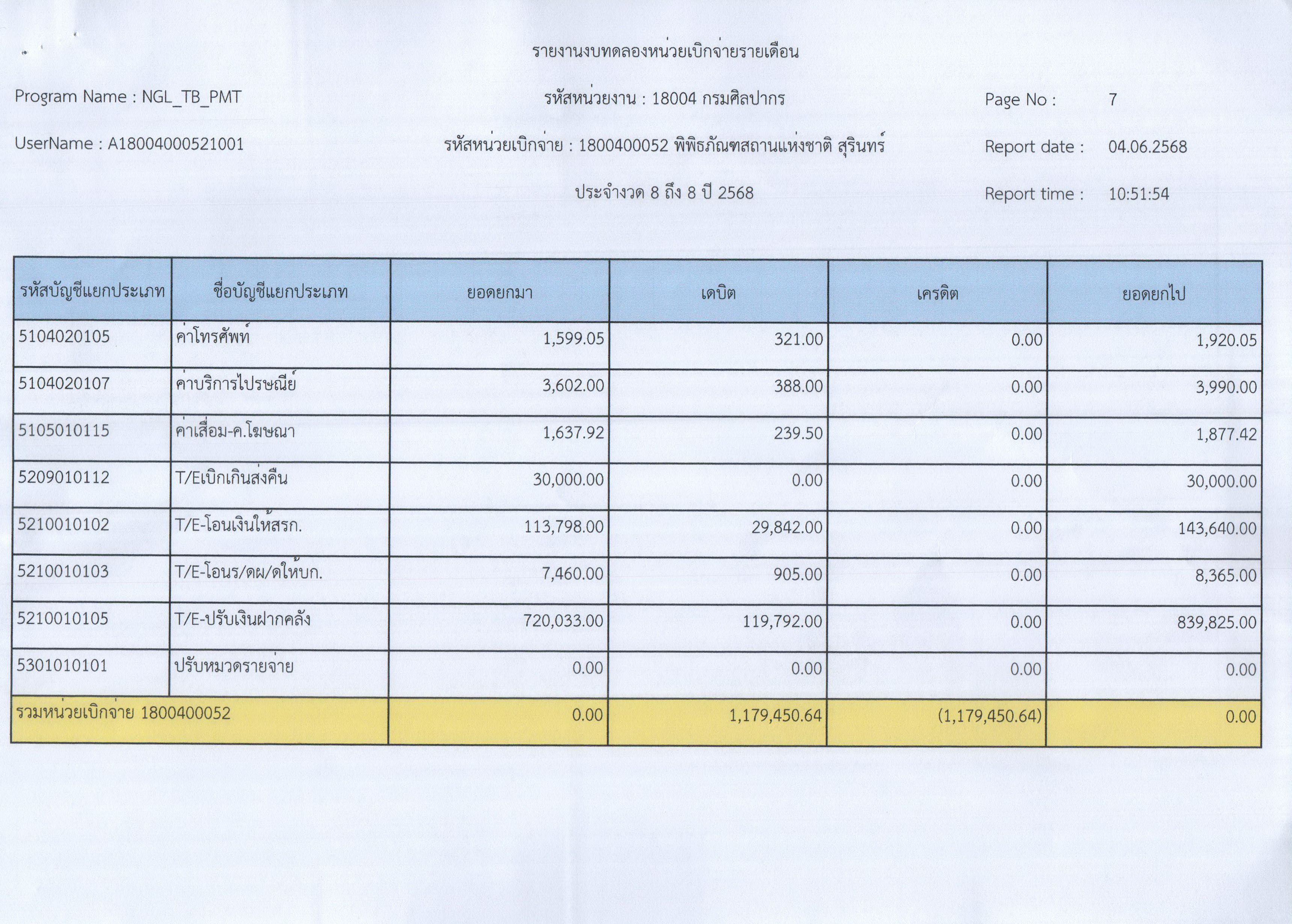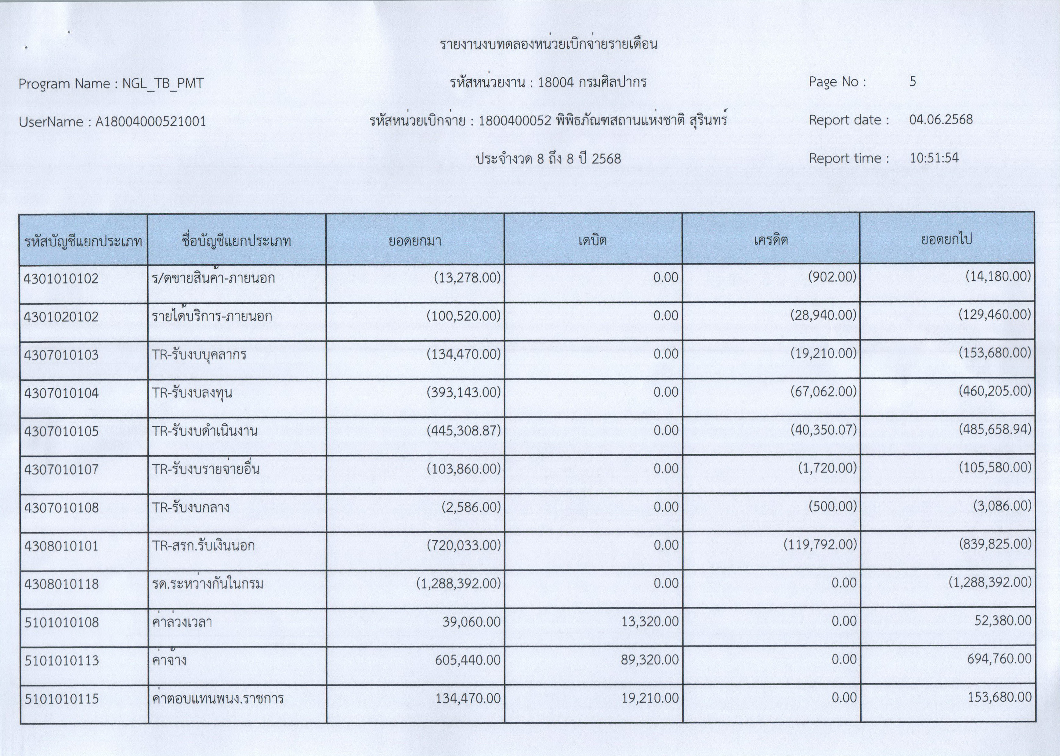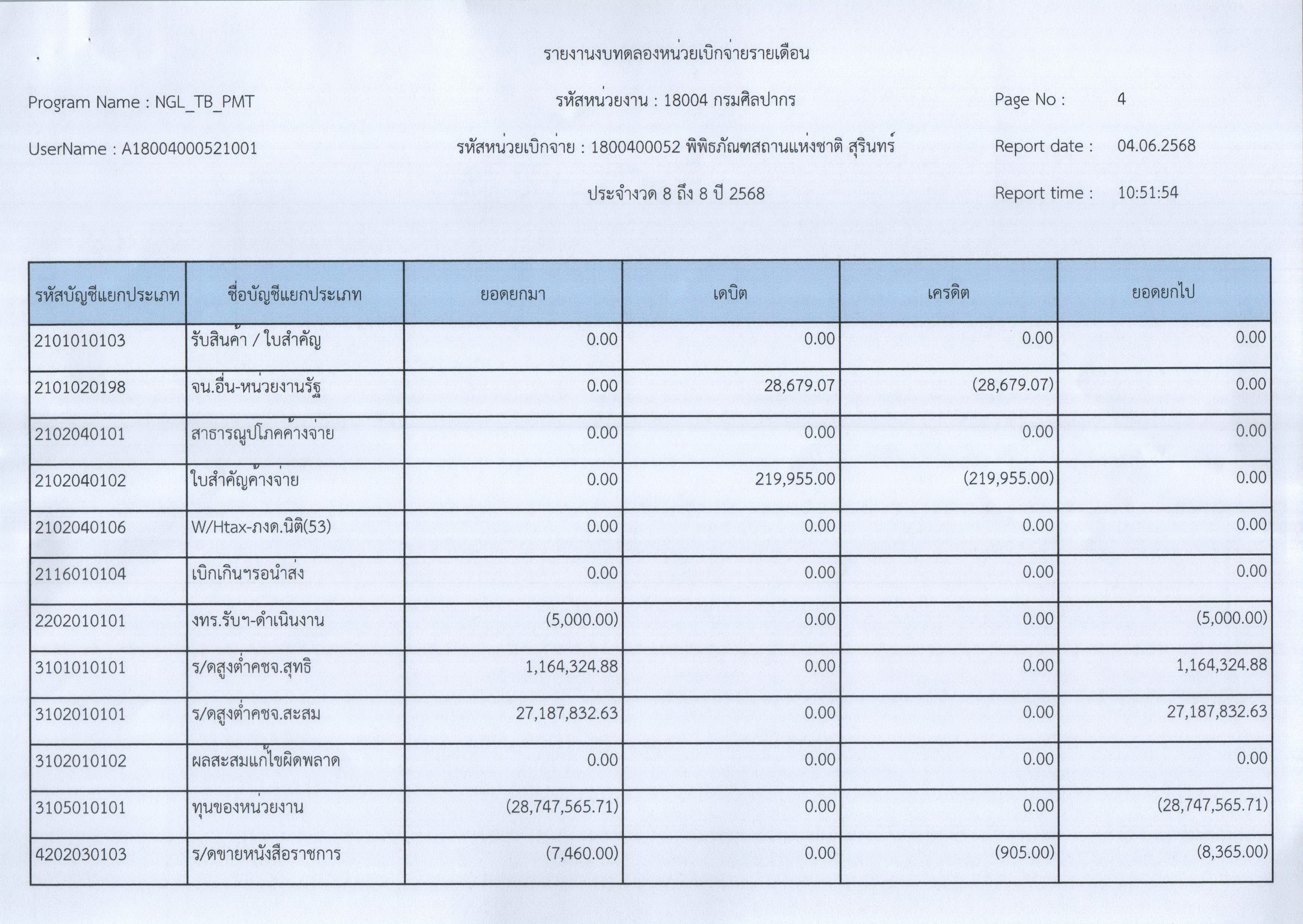 รายงานงบทดลองหน่วยเบิกจ่ายรายเดือนพฤษภาคม ๒๕๖๘