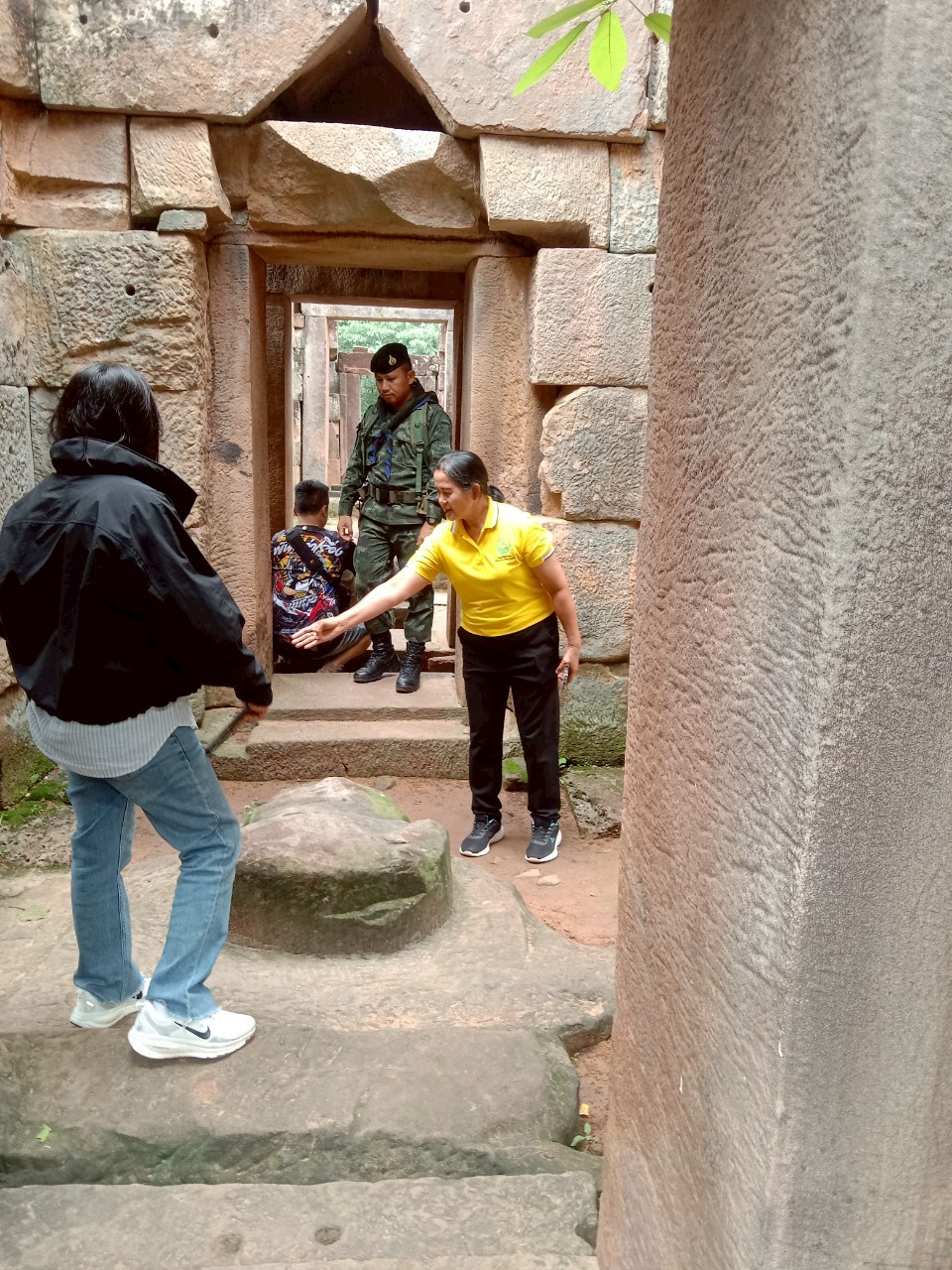 วันที่ ๑๒ มิถุนายน ๒๕๖๘ นางปริญญา สุขใหญ่ หัวหน้าพิพิธภัณฑสถานแห่งชาติ สุรินทร์ และนายกรภัทร์ สุขใหญ่ พนักงานประจำพิพิธภัณฑ์ ออกพื้นที่กลุ่มโบราณสถานปราสาทตาเมือนธม และโบราณสถานปราสาทตาควาย อำเภอพนมดงรัก จังหวัดสุรินทร์ เพื่อบรรยายให้ข้อมูลกับคณะสื่อสารมวลชนข่าว ๓ มิติ และสำนักข่าว NBT กรมประชาสัมพันธ์