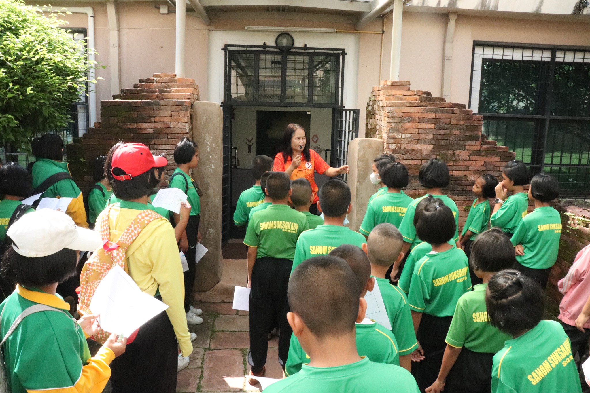 วันพุธที่ ๒๕ มิถุนายน พ.ศ. ๒๕๖๘ เวลา ๐๙.๓๐ น. นักเรียนชั้นอนุบาล ๑ ถึงชั้นประถมศึกษาปีที่ ๖ โรงเรียนสนมศึกษาคาร ตำบลสนม อำเภอสนม จังหวัดสุรินทร์ จำนวน ๓๕๐ คน คุณครู ๒๒ คน เข้าเยี่ยมชมพิพิธภัณฑสถานแห่งชาติ สุรินทร์ โดยมีนายนพรัศม์ เมธีวราธนานันท์ ภัณฑารักษ์ปฏิบัติการ และพนักงานประจำพิพิธภัณฑ์ทุกคน ให้การต้อนรับและบรรยายนำชม