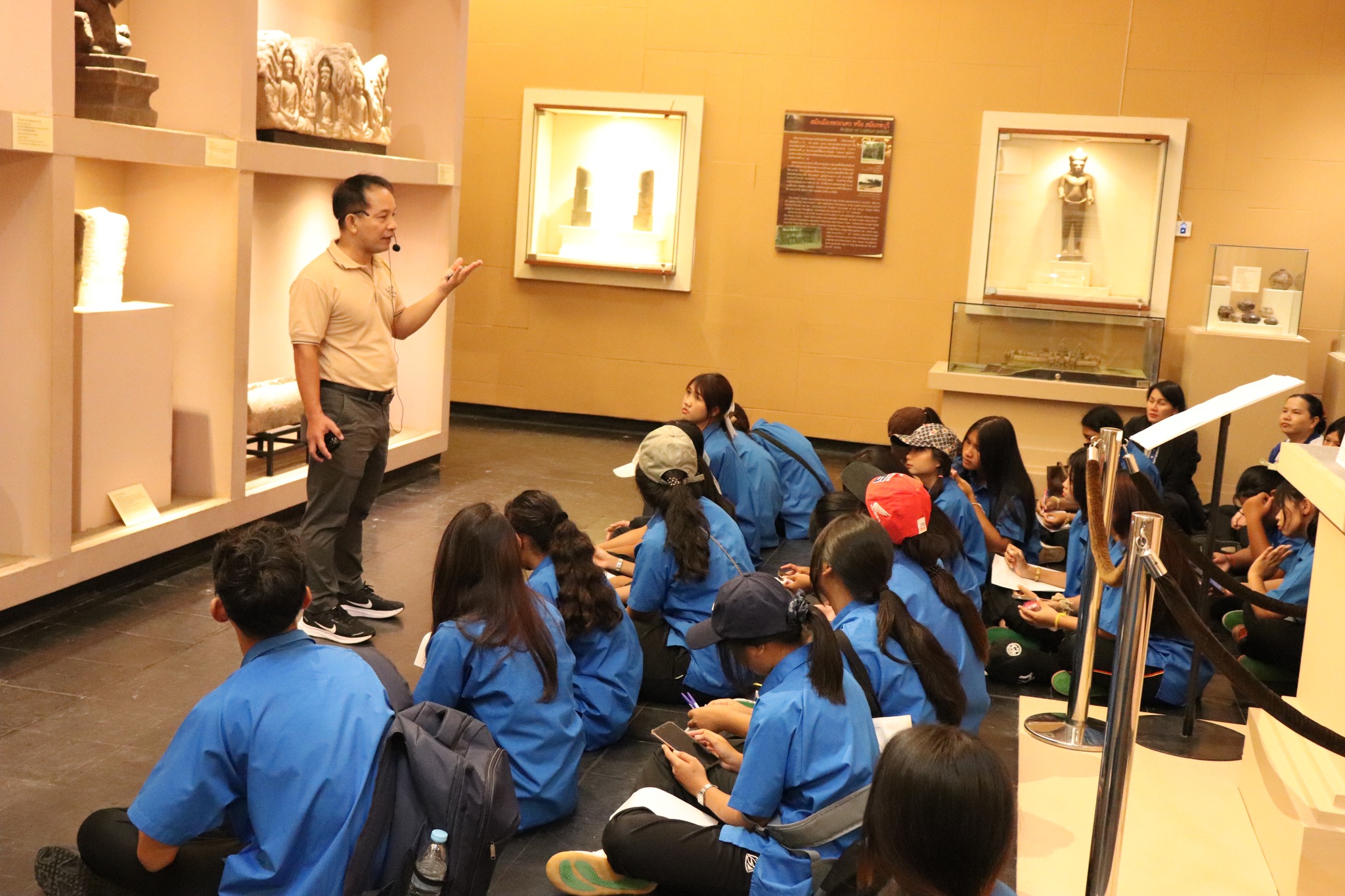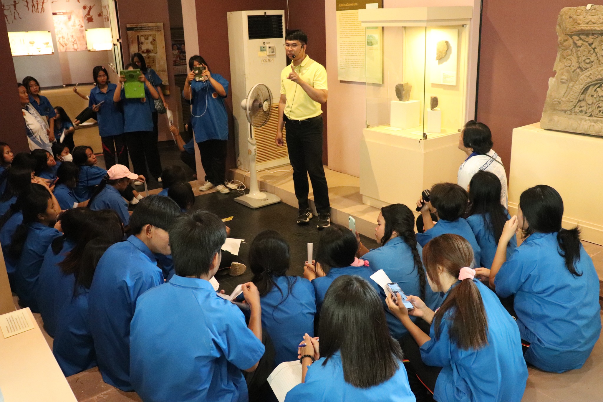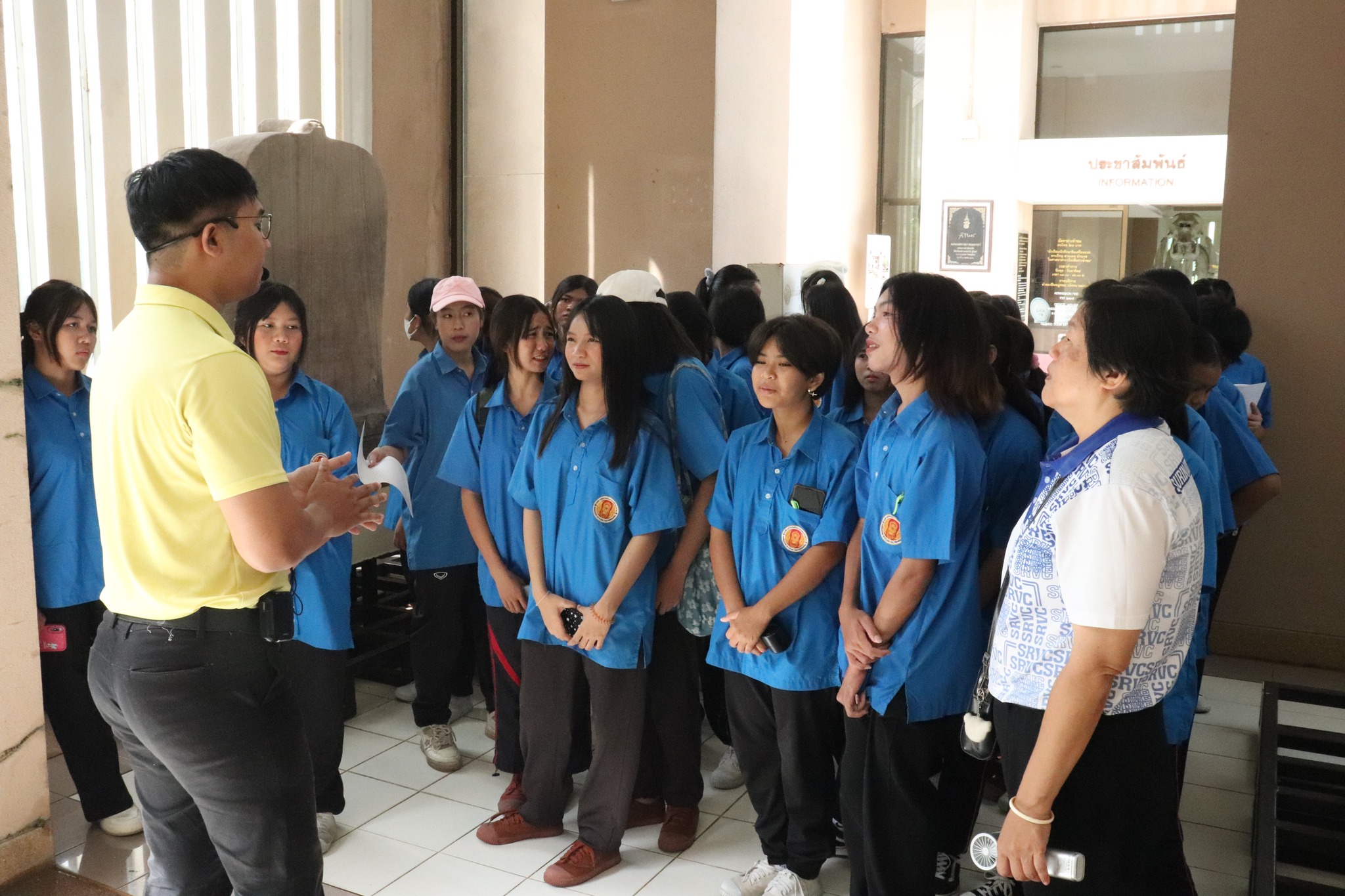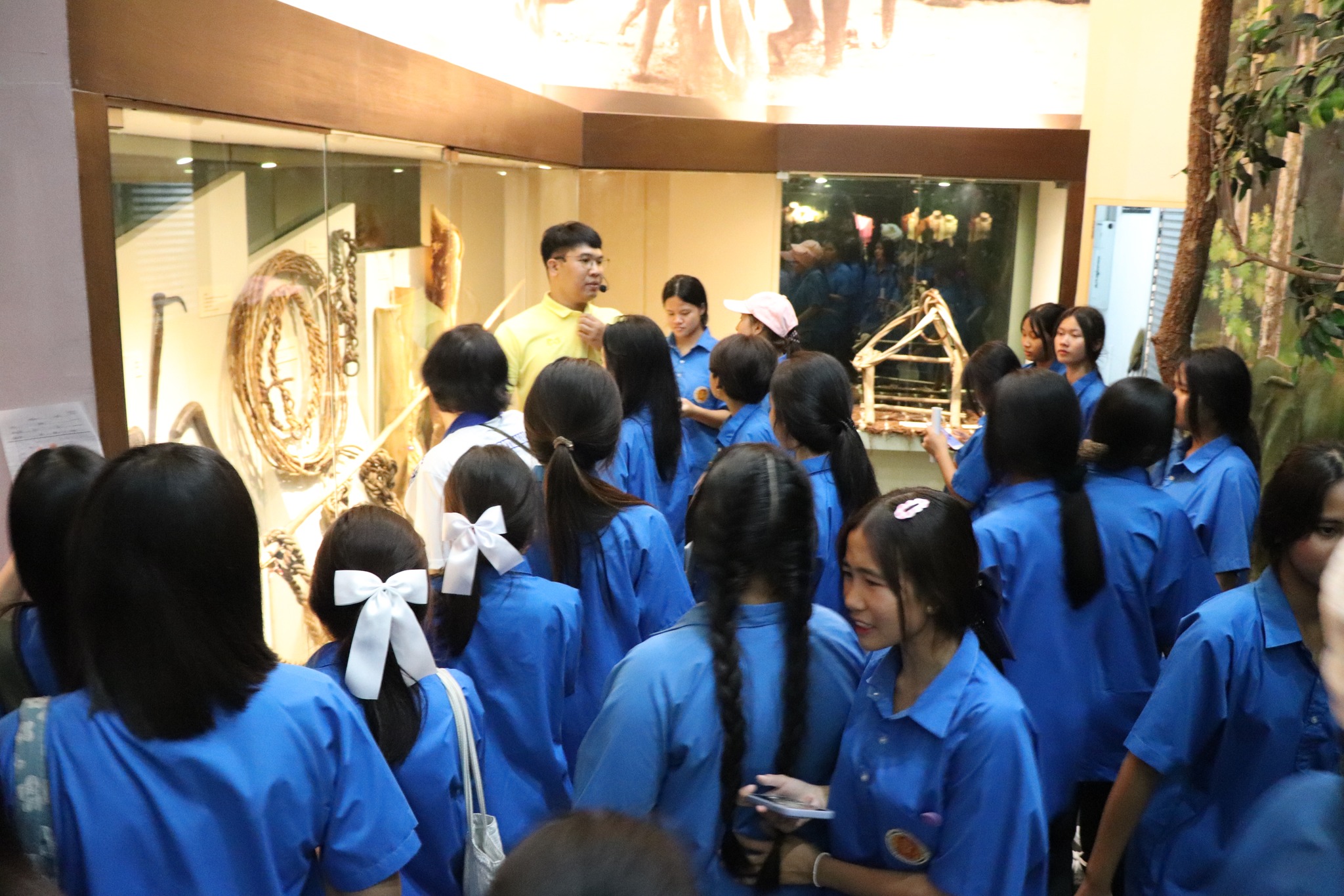 วันศุกร์ที่ ๔ กรกฎาคม พ.ศ.๒๕๖๘ เวลา ๐๙.๐๐ น. นักเรียนระดับประกาศนียบัติวิชาชีพ(ปวช.) ชั้นปีที่ ๑ แผนกวิชาการบัญชี วิทยาลัยอาชีวศึกษาสุรินทร์ อำเภอเมืองฯ จังหวัดสุรินทร์ จำนวน ๗๘ คน อาจารย์ ๕ คน เข้าเยี่ยมชมพิพิธภัณฑสถานแห่งชาติ สุรินทร์ โดยมีนายกรภัทร์ สุขใหญ่ พนักงานประจำพิพิธภัณฑ์ และนายธนากร วงศ์สิริพัฒนะ นักวิชาการวัฒนธรรม ให้การต้อนรับและบรรยายนำชม