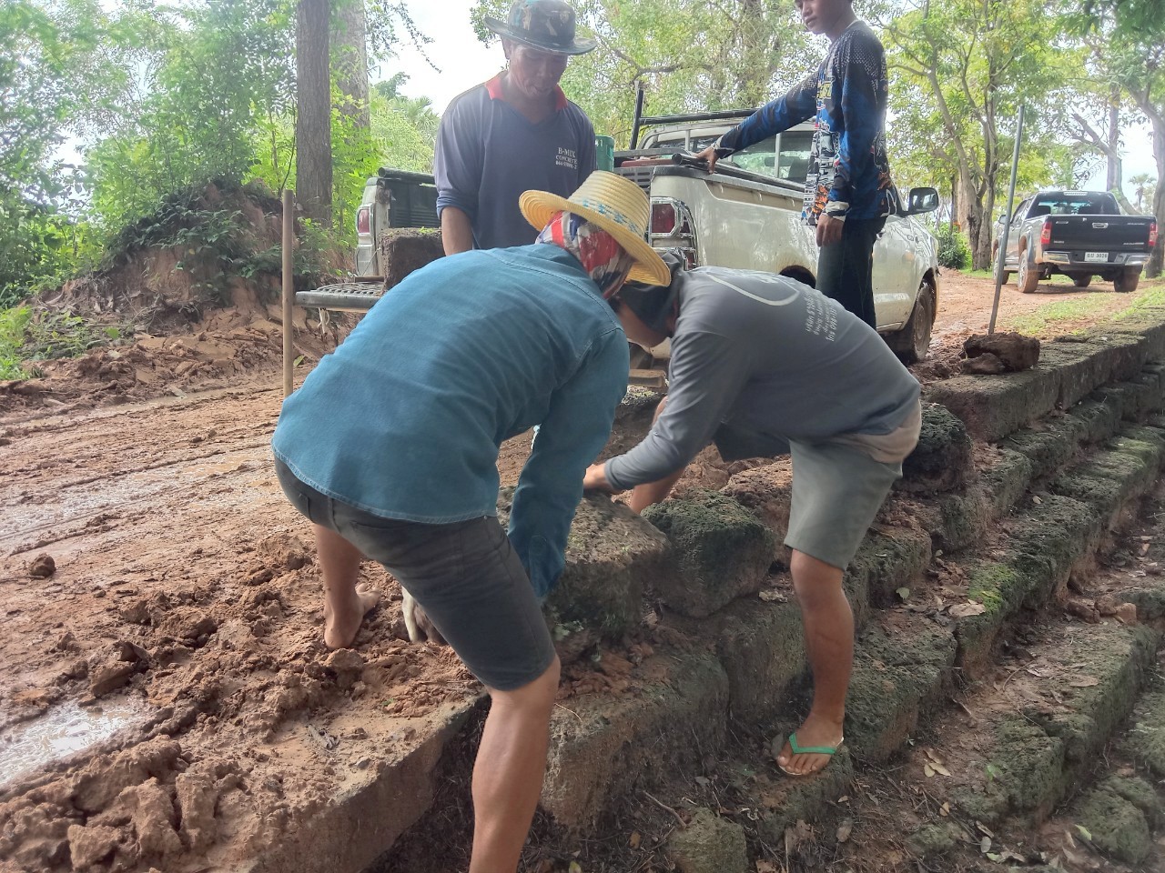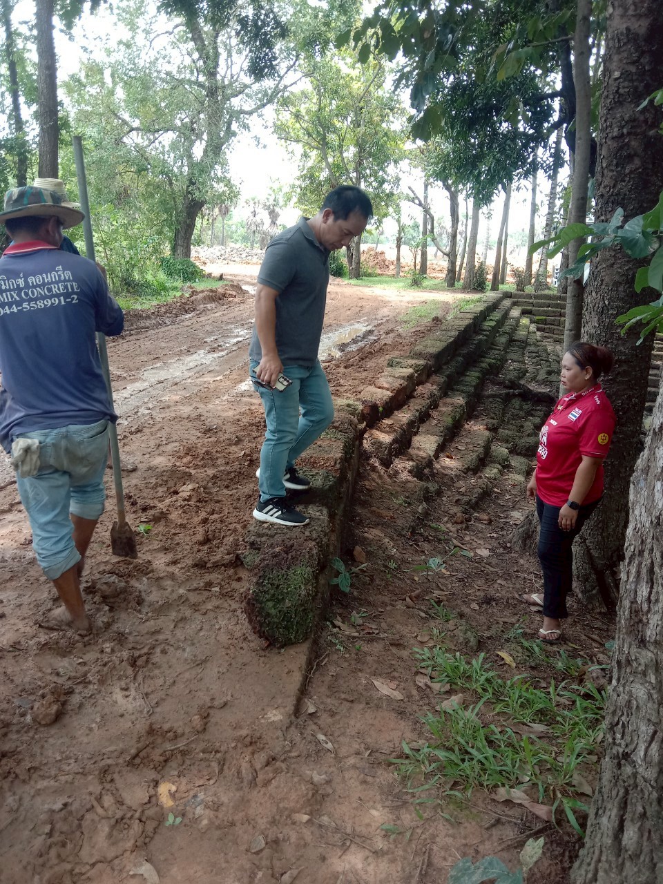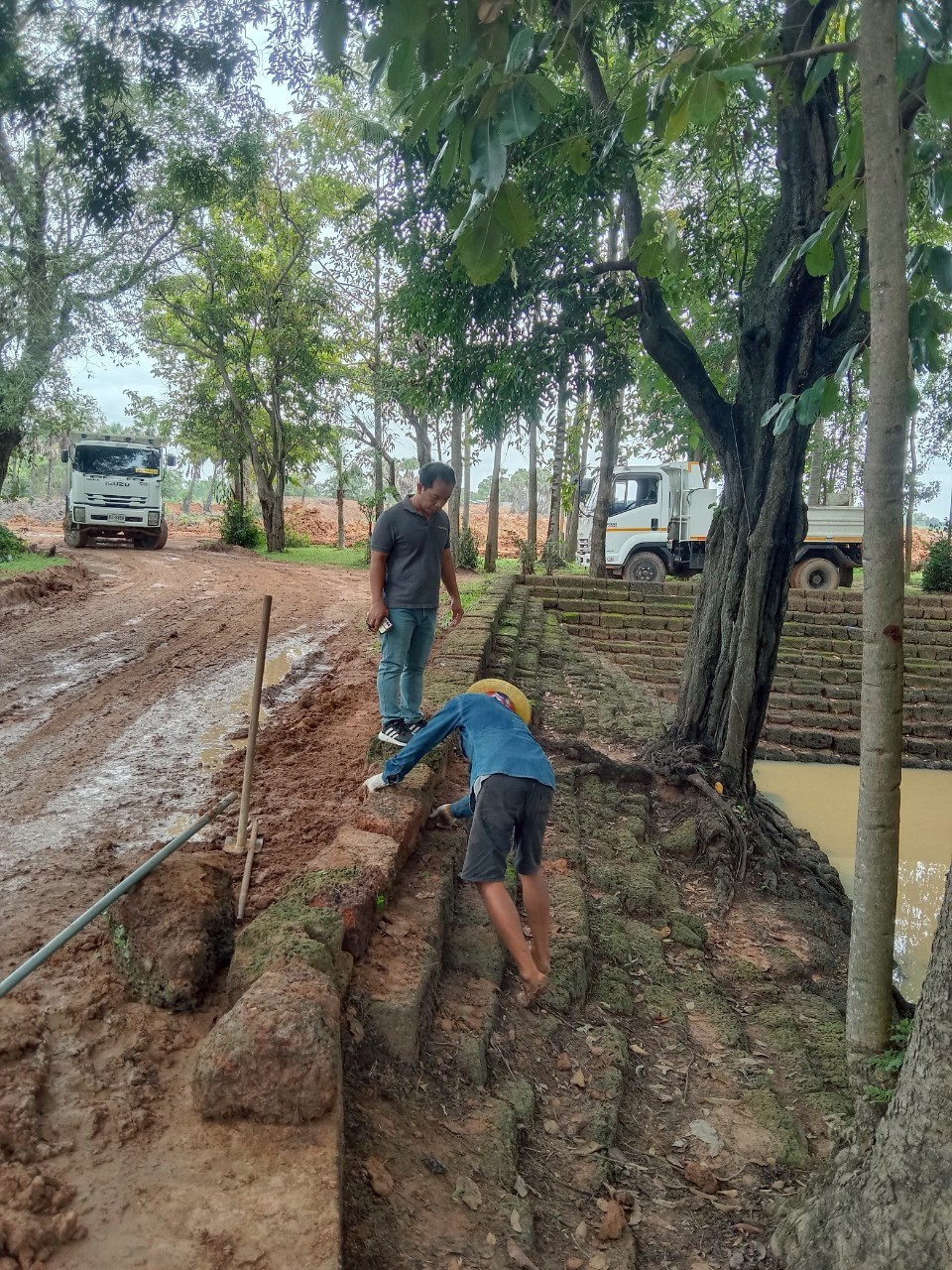 ควบคุมการซ่อมแซมขอบสระน้ำที่ชำรุดของโบราณสถานปราสาททามจาน อำเภอปรางค์กู่ จังหวัดศรีสะเกษ