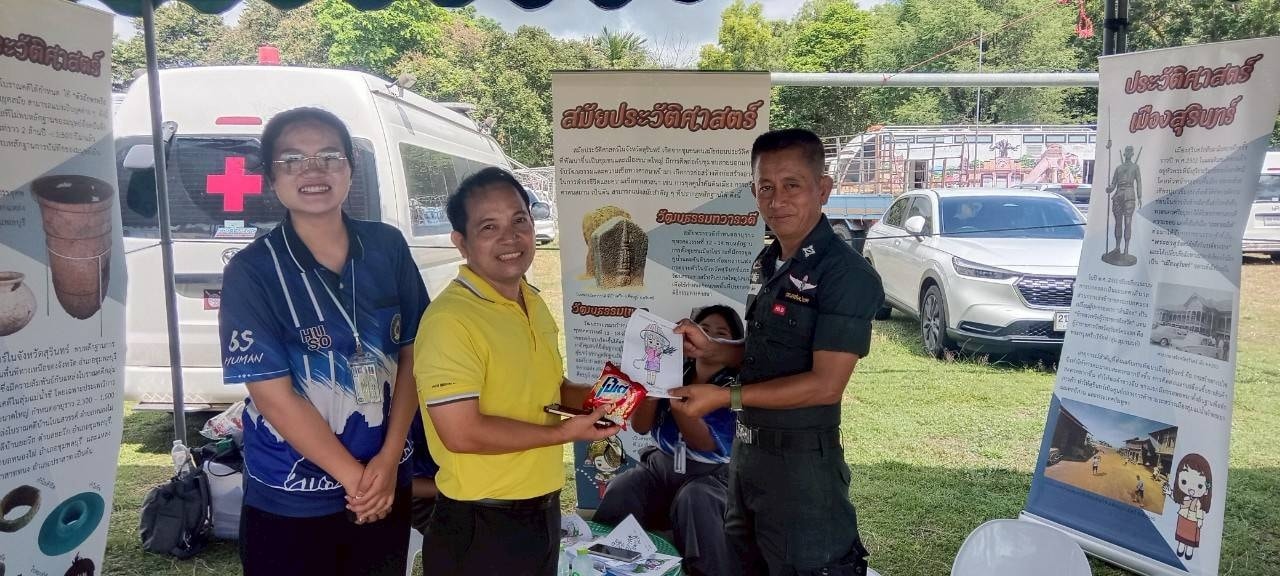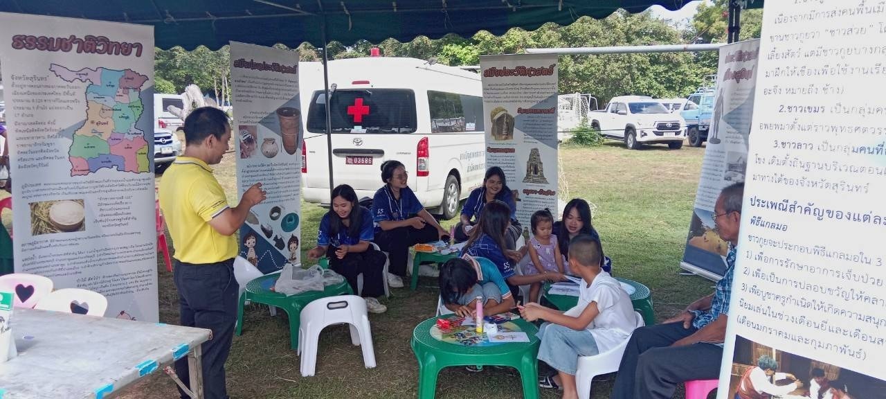 วันศุกร์ที่ ๑๘ กรกฎาคม พ.ศ. ๒๕๖๘ พิพิธภัณฑสถานเเห่งชาติ สุรินทร์ โดยนายกรภัทร์ สุขใหญ่ พนักงานประจำพิพิธภัณฑ์เเละนักศึกษาฝึกประสบการณ์วิชาชีพ จัดกิจกรรมโครงการพิพิธภัณฑ์สัญจร โดยบูรณาการร่วมกับโครงการจังหวัดสุรินทร์สร้างสุข สร้างรอยยิ้ม และโครงการเหล่ากาชาดห่วงใยสร้างบ้านผู้ยากไร้และด้อยโอกาสเฉลิมพระเกียรติฯ ในพื้นที่อำเภอโนนนารายณ์ ณ โรงเรียนบ้านขุมดิน หมู่ที่ 4 ตำบลหนองหลวง อำเภอโนนนารายณ์ จังหวัดสุรินทร์ นายชำนาญ ชื่นตา ผู้ว่าราชการจังหวัดสุรินทร์ เป็นประธานกล่าวเปิดโครงการจังหวัดสุรินทร์สร้างสุข สร้างรอยยิ้ม ประจำปีงบประมาณ พ.ศ.2568 โดยมีนายวีระชัย ประเสริฐโส รองผู้ว่าราชการจังหวัดสุรินทร์ ปลัดจังหวัด ประชาสัมพันธ์จังหวัด หัวหน้าส่วนราชการและหน่วยงานที่เกี่ยวข้อง ร่วมพิธีฯ