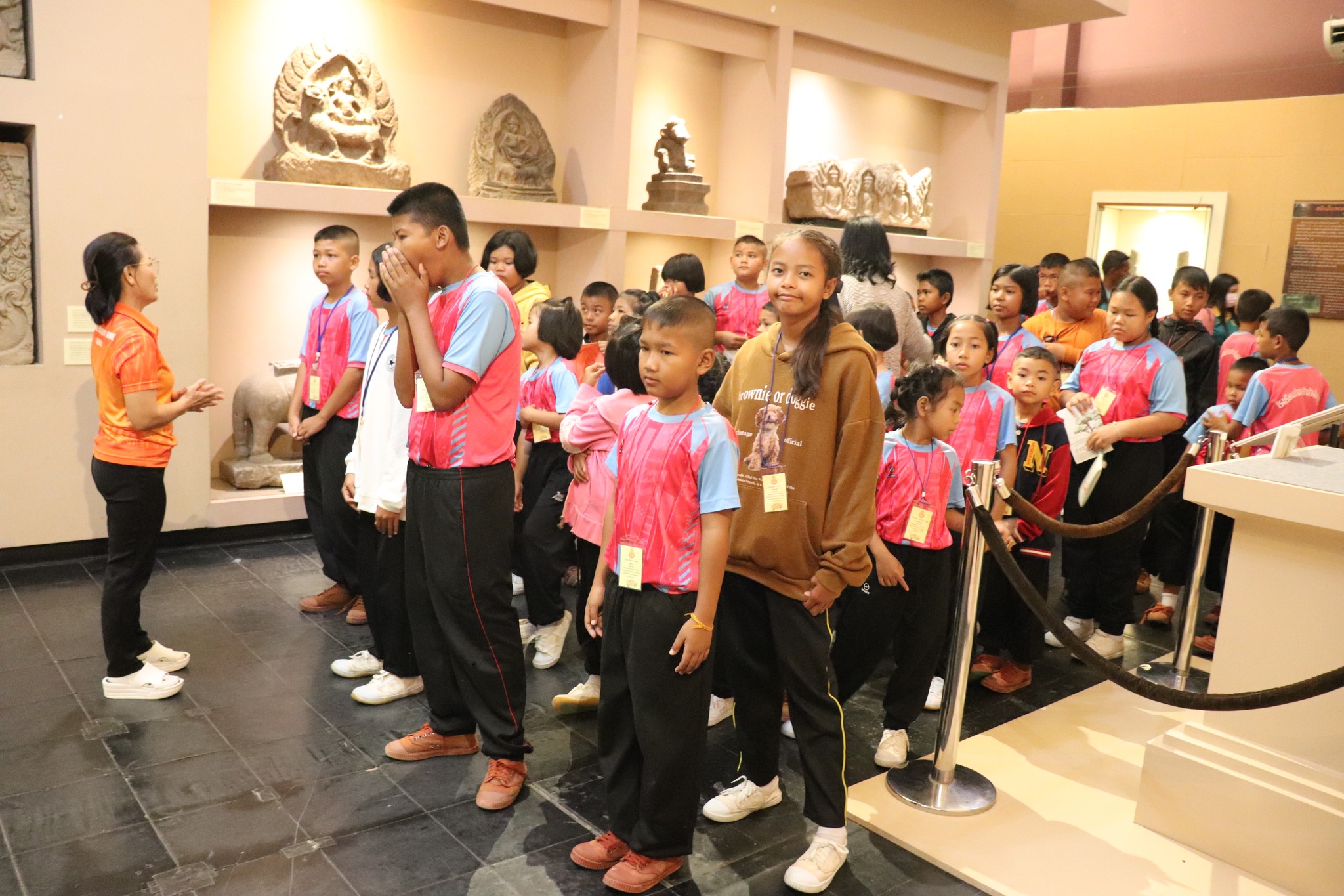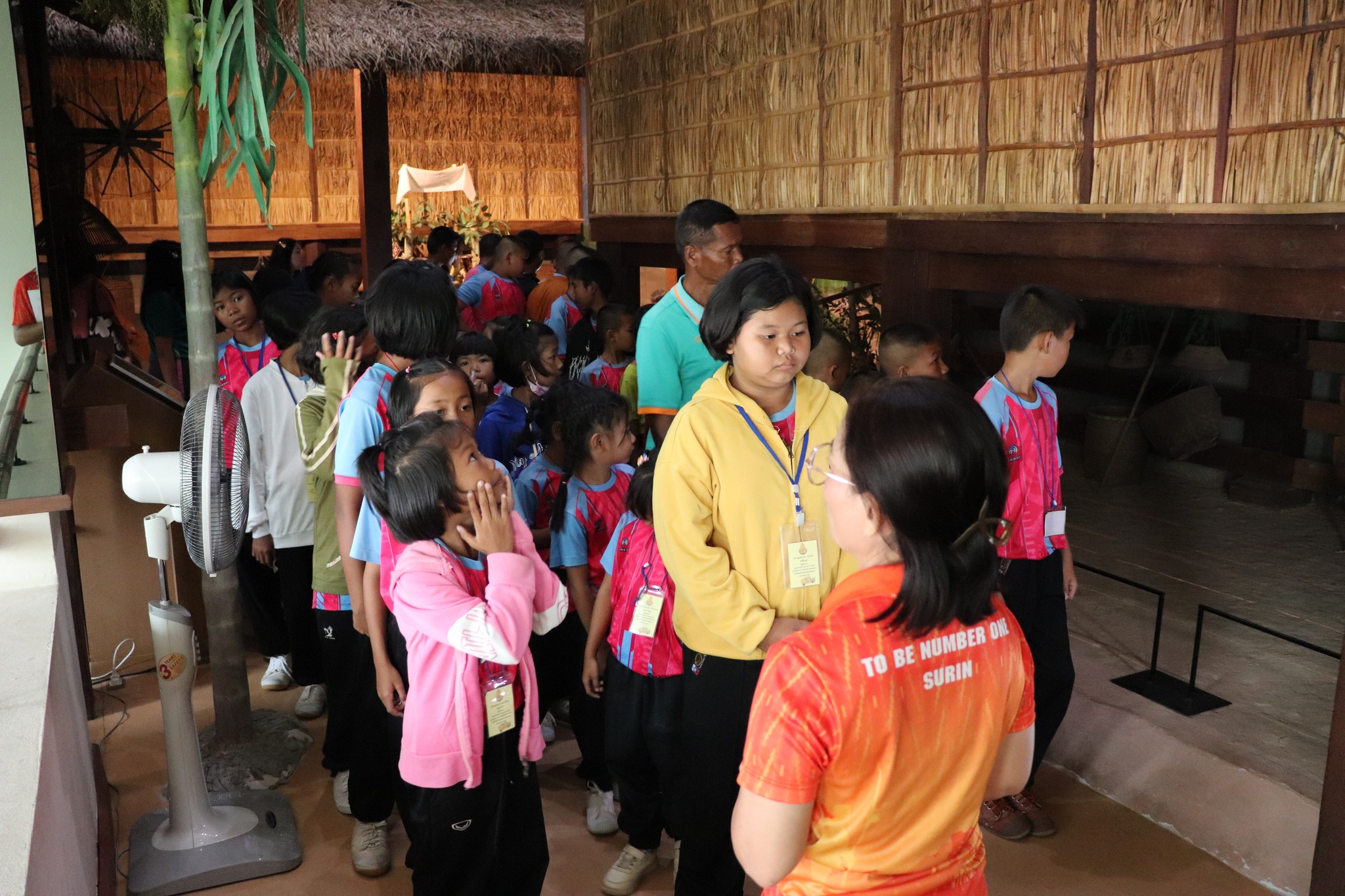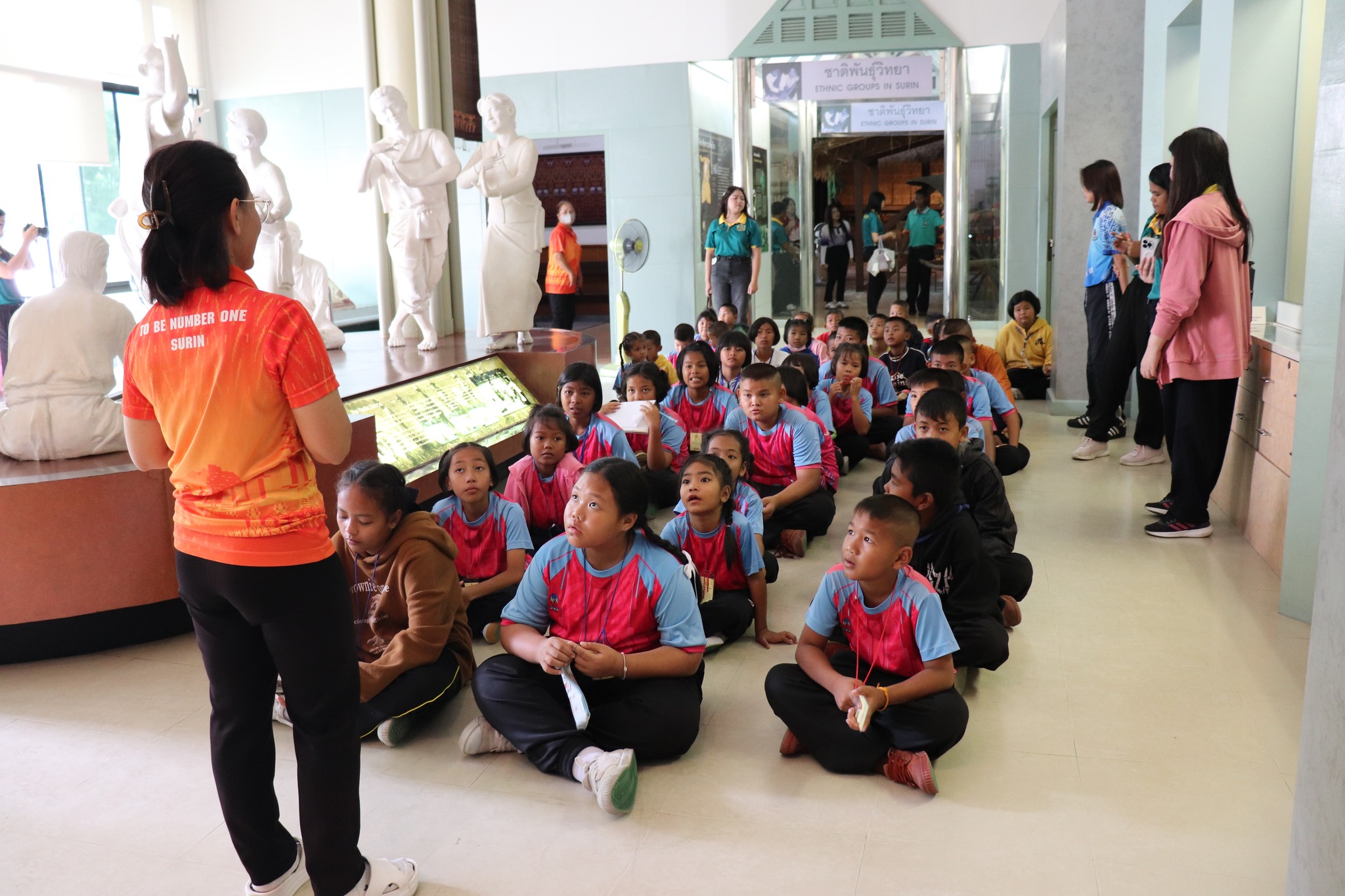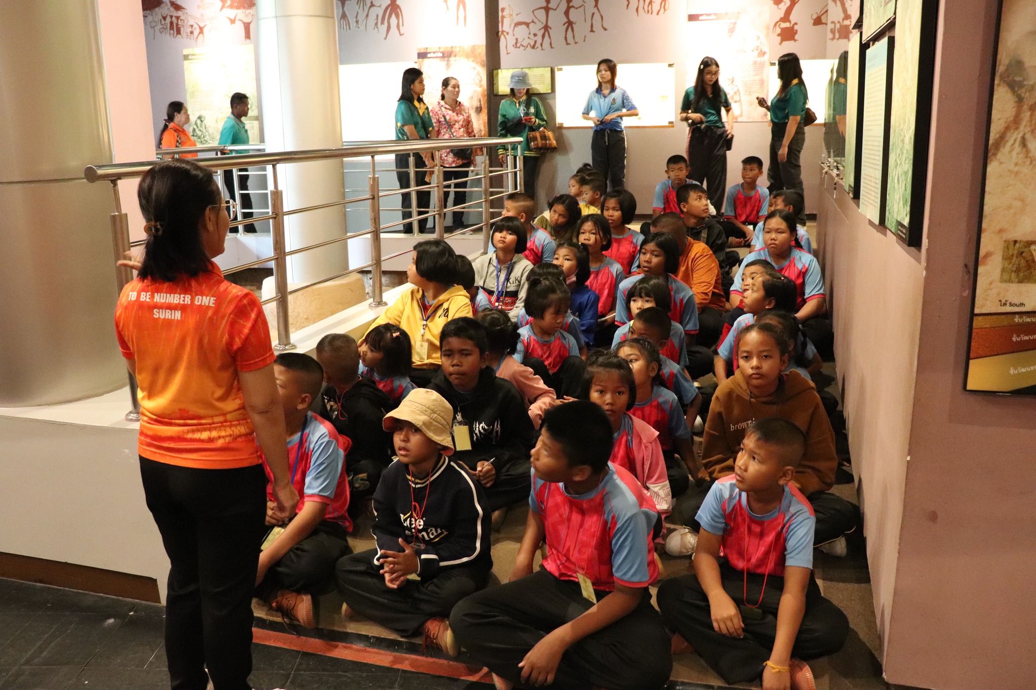 วันพุธที่ ๒๗ สิงหาคม พ.ศ. ๒๕๖๘ เวลา ๐๙.๓๐ น. นักเรียนชั้นอนุบาล ๒ ถึงชั้นประถมศึกษาปีที่ ๖ โรงเรียนบ้านเหล่าม่วงโนนตาล ตำบลธาตุ อำเภอรัตนบุรี จังหวัดสุรินทร์ จำนวน ๖๐ คน คุณครู ๑๐ คน เข้าเยี่ยมชมพิพิธภัณฑสถานแห่งชาติ สุรินทร์ โดยมีนางสาวอภิญญา สุขใหญ่ พนักงานประจำพิพิธภัณฑ์ ให้การต้อนรับและบรรยายนำชม
