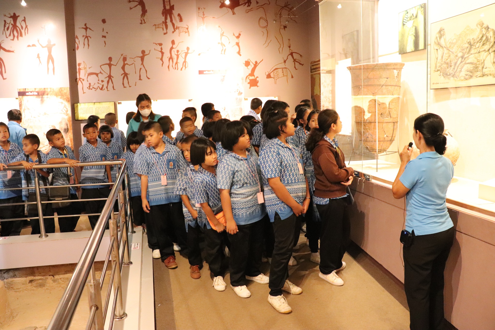 คุณครูและผู้ปกครอง ๑๐ คน เข้าเยี่ยมชมพิพิธภัณฑสถานแห่งชาติ สุรินทร์ โดยมี นางถนอม หลวงกลาง พนักงานประจำพิพิธภัณฑ์ ให้การต้อนรับและบรรยายนำชม