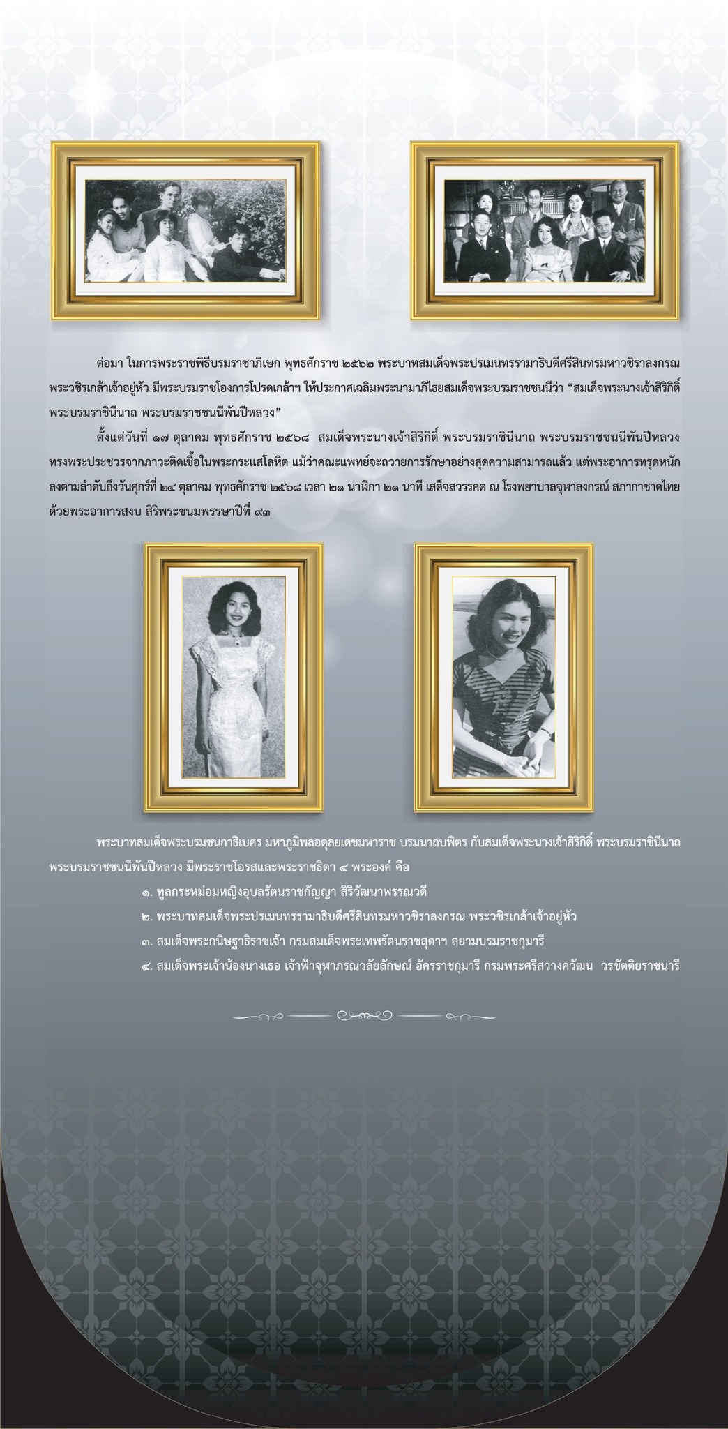 ภาพนิทรรศการ "น้อมรำลึกในพระมหากรุณาธิคุณ สมเด็จพระนางเจ้าสิริกิติ์ พระบรมราชินีนาถ พระบรมราชชนนีพันปีหลวง"