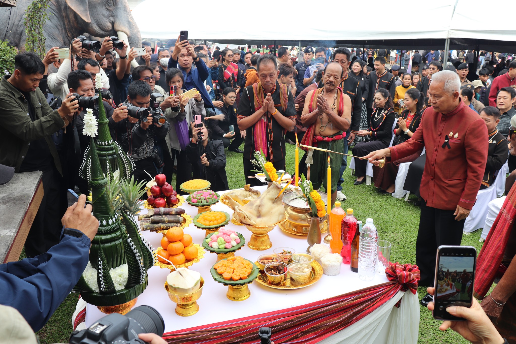 ร่วมพิธีต้อนรับและเลี้ยงอาหารช้าง ณ ลานพิธีอนุสาวรีย์พระยาสุรินทร์ภักดีศรีณรงค์จางวาง จังหวัดสุรินทร์