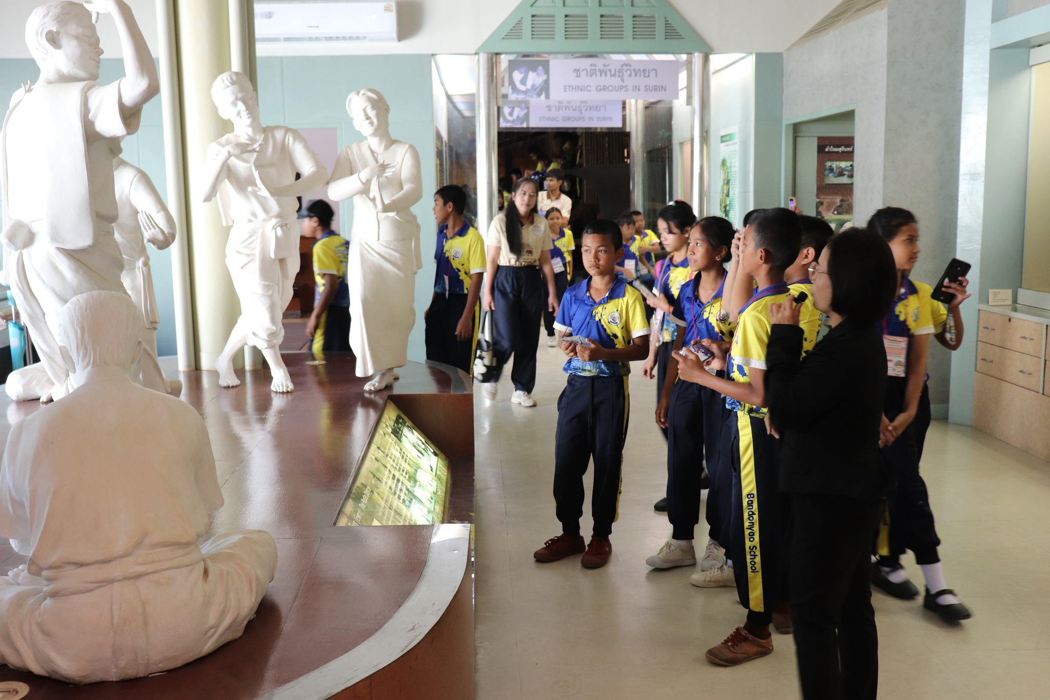 จำนวน ๕๓ คน คุณครู ๑๒ คน เข้าเยี่ยมชมพิพิธภัณฑสถานแห่งชาติ สุรินทร์ โดยมีนางสาวอภิญญา สุขใหญ่ พนักงานประจำพิพิธภัณฑ์ ให้การต้อนรับและบรรยายนำชม