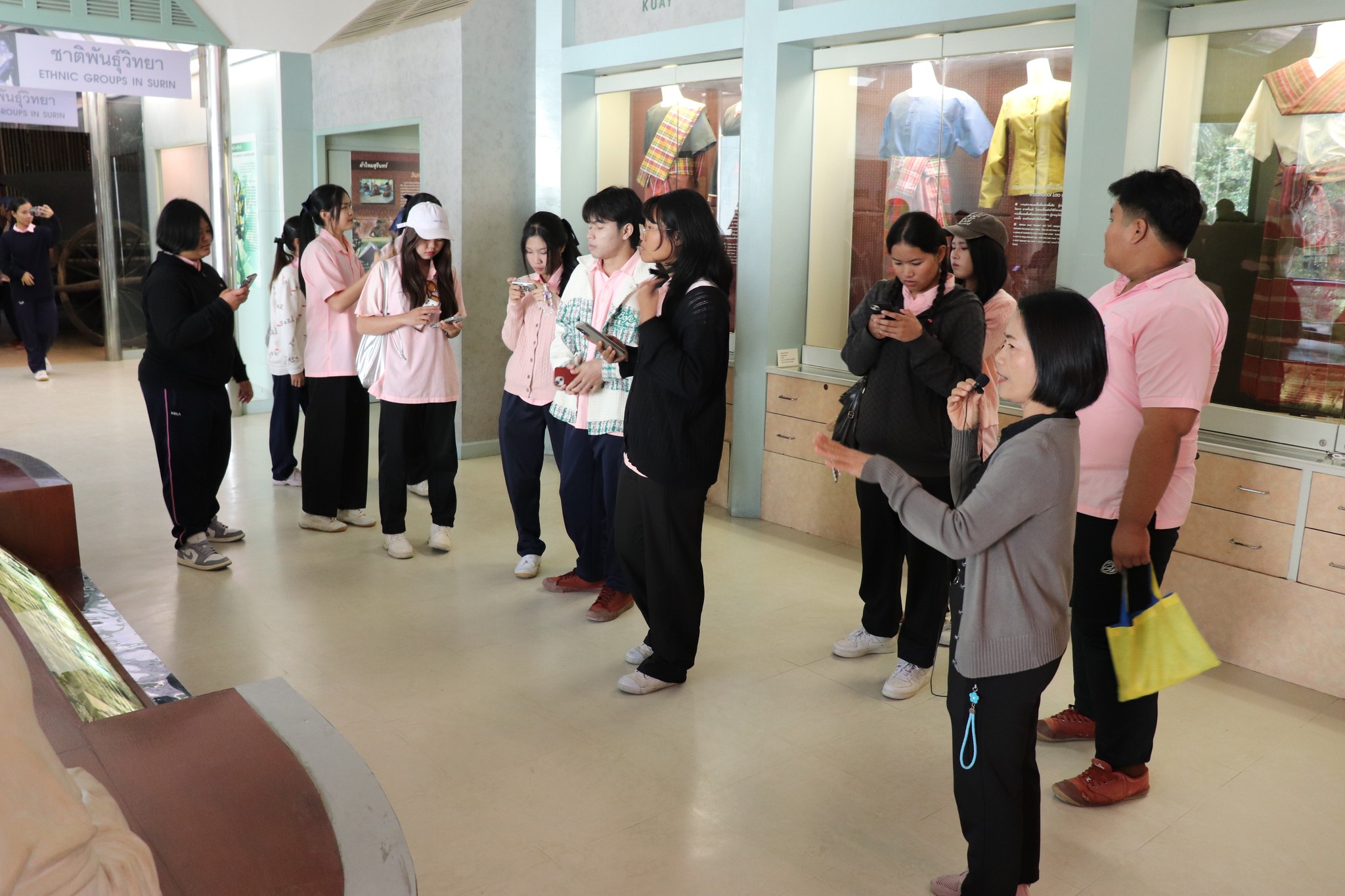 วันพฤหัสบดีที่ ๑๘ ธันวาคม พ.ศ.๒๕๖๘ เวลา ๐๙.๓๐ น. นักเรียนชั้นมัธยมศึกษาปีที่ ๖ จากโรงเรียนห้วยทับทันวิทยาคม อำเภอห้วยทับทัน จังหวัดศรีสะเกษ จำนวน ๑๙๗ คน คุณครู ๑๖ คน เข้าเยี่ยมชมพิพิธภัณฑสถานแห่งชาติ สุรินทร์ โดยมี นพรัศม์ เมธีวราธนานันท์ ภัณฑารักษ์ปฏิบัติการ นางสาวอภิญญา สุขใหญ่ พนักงานประจำพิพิธภัณฑ์ ให้การต้อนรับและบรรยายนำชม