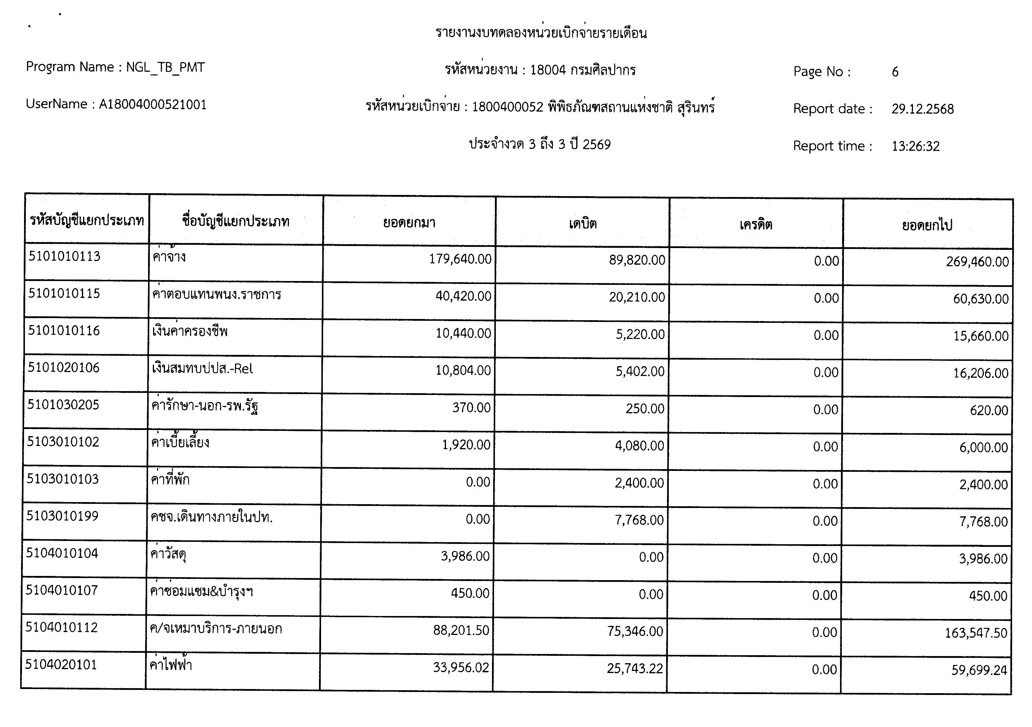 รายงานงบทดลองหน่วยเบิกจ่ายรายเดือนธันวาคม ๒๕๖๘ พิพิธภัณฑสถานแห่งชาติ สุรินทร์