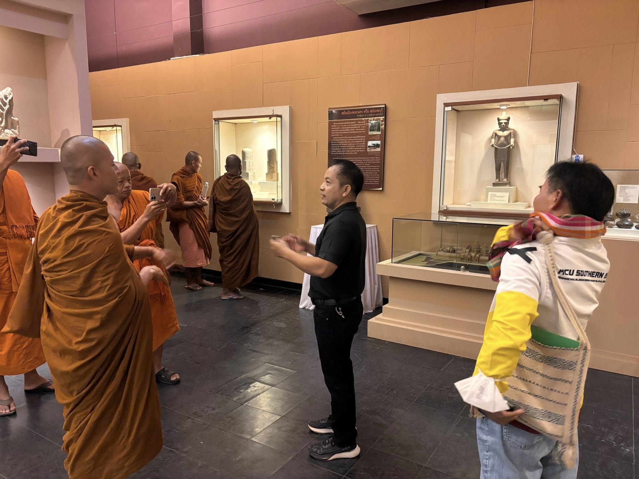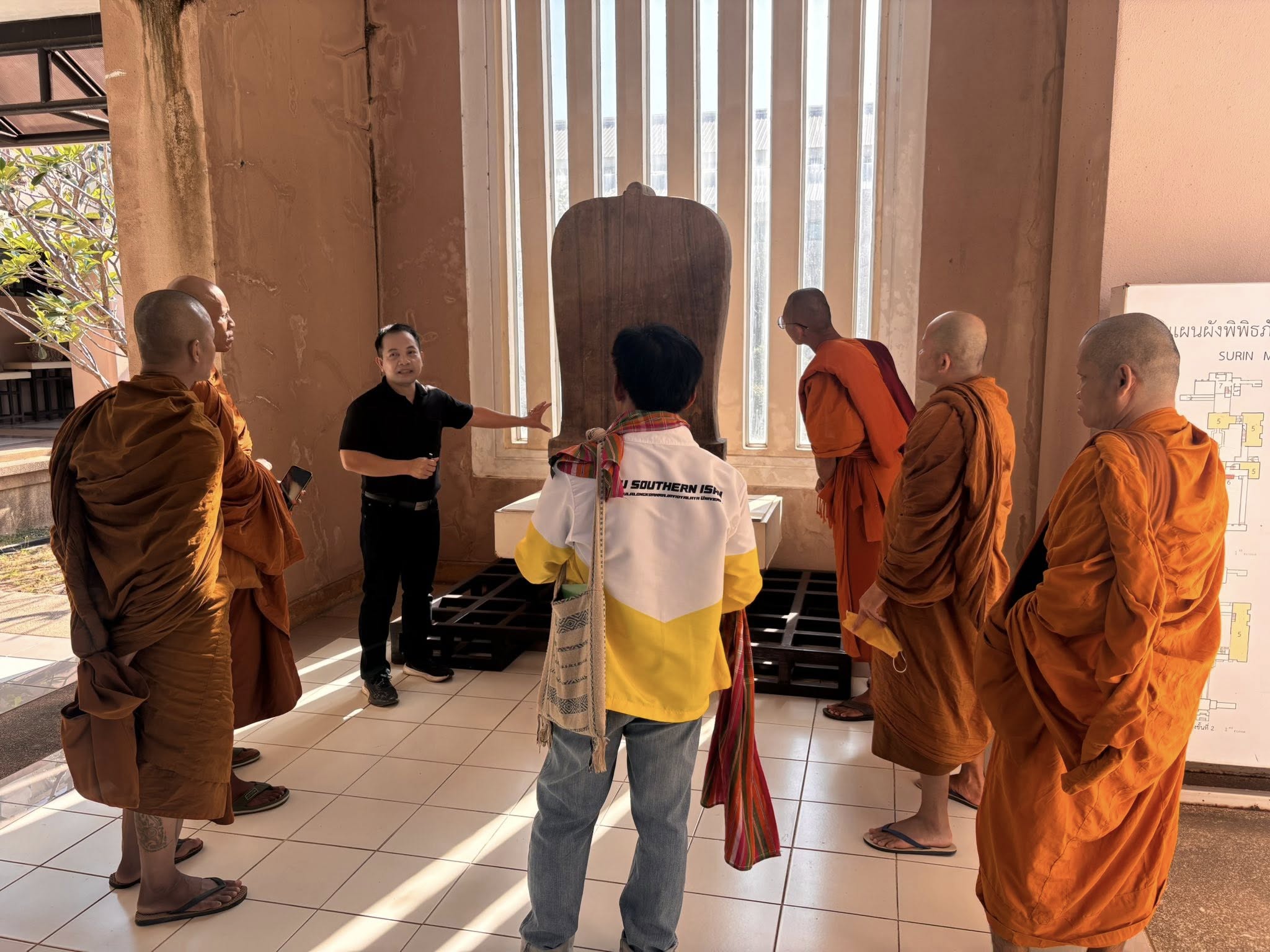 วันพฤหัสบดีที่ ๕ กุมภาพันธ์ พ.ศ.๒๕๖๙ เวลา ๐๙.๓๐ น. นิสิตชั้นปีที่ ๔ หลักสูตรพุทธศาสตรบัณฑิต สาขาวิชาพระพุทธศาสนา จากมหาวิทยาลัยมหาจุฬาลงกรณราช วิทยาลัย วิทยาเขตสุรินทร์ อำเภอเมือง จังหวัดสุรินทร์ จำนวน ๑๕ รูป อาจารย์ ๑ คน เข้าเยี่ยมชมพิพิธภัณฑสถานแห่งชาติ สุรินทร์ โดยมี นายกรภัทร์ สุขใหญ่ พนักงานประจำพิพิธภัณฑ์ ให้การต้อนรับและบรรยายนำชม