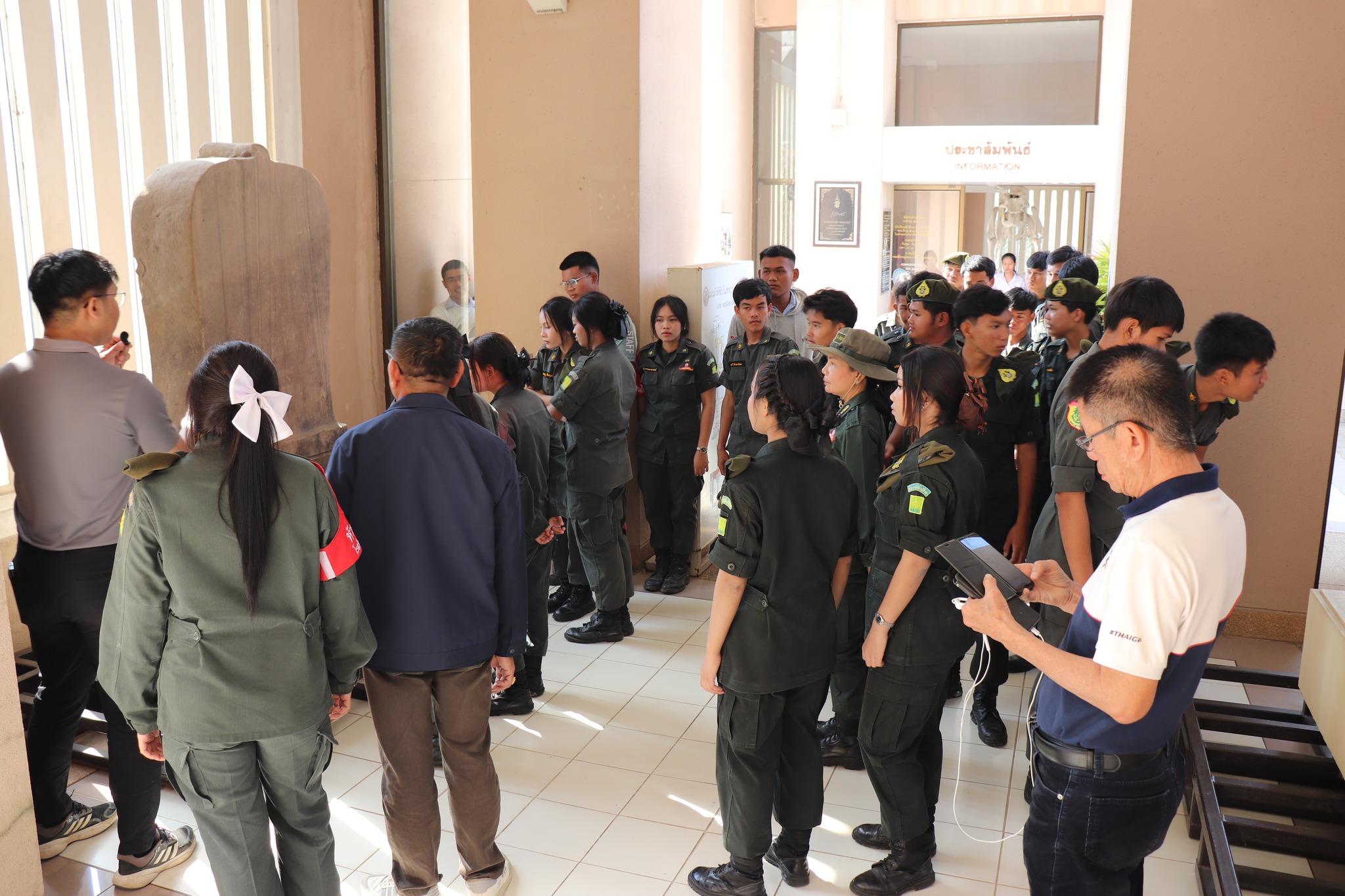 วันศุกร์ที่ ๖ กุมภาพันธ์ พ.ศ. ๒๕๖๙ เวลา ๑๐.๐๐ น. นักศึกษาวิชาทหารชั้นปีที่ ๑-๓ โรงเรียนถนนหักพิทยาคม ตำบลถนนหัก อำเภอนางรอง จังหวัดบุรีรัมย์ จำนวน ๔๐ คน คุณครู ๒ คน เข้าเยี่ยมชมพิพิธภัณฑสถานแห่งชาติ สุรินทร์ โดยมีนายธนากร วงศ์สิริพัฒนะ นักวิชาการวัฒนธรรม ให้การต้อนรับและบรรยายนำชม