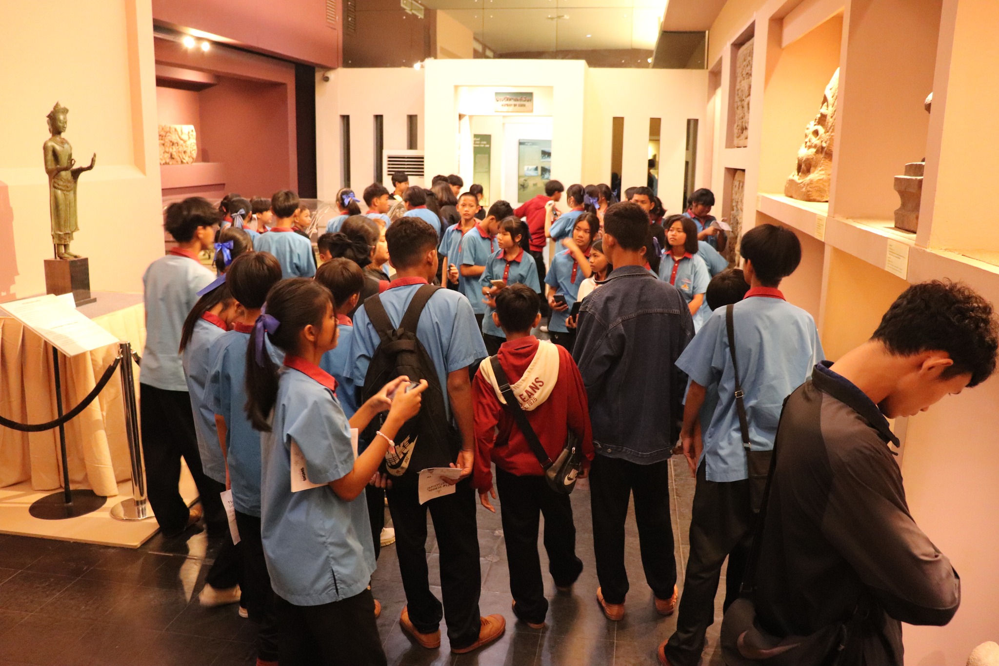 วันศุกร์ที่ ๒๐ กุมภาพันธ์ พ.ศ. ๒๕๖๙ เวลา ๑๐.๐๐ น. นักเรียนชั้นมัธยมศึกษาปีที่ ๑ - ๓ โรงเรียนธาตุศรีนคร ตำบลธาตุ อำเภอรัตนบุรี จังหวัดสุรินทร์ จำนวน ๒๐๐ คน คุณครู ๒๐ คน เข้าเยี่ยมชมพิพิธภัณฑสถานแห่งชาติ สุรินทร์ โดยมีนางถนอม หลวงกลาง นางสาวอภิญญา สุขใหญ่ นางศรีสุดา ศรีสด พนักงานประจำพิพิธภัณฑ์ ให้การต้อนรับและบรรยายนำชม