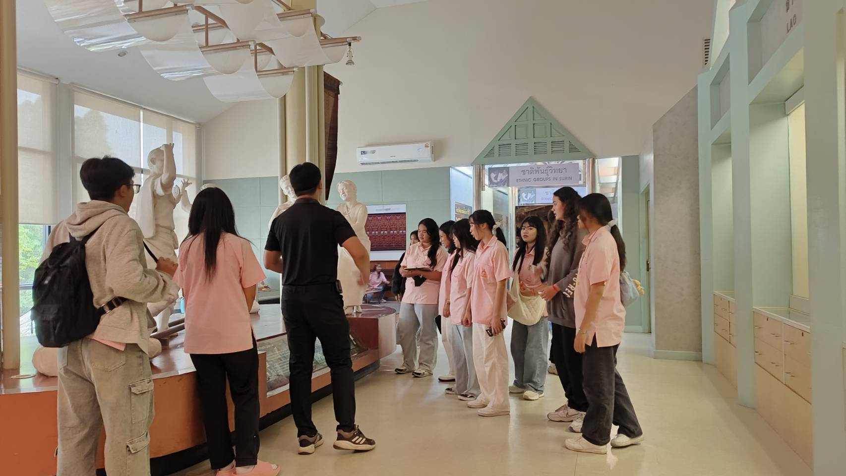 วันพฤหัสบดีที่ ๒๖ กุมภาพันธ์ พ.ศ. ๒๕๖๙ เวลา ๑๐.๐๐ น. นักเรียนชั้นมัธยมศึกษาปีที่ ๖/๒ โรงเรียนสตรีสิริเกศ ตำบลเมืองใต้ อำเภอเมือง จังหวัดศรีสะเกษ จำนวน ๔๐ คน คุณครู ๒ คน เข้าเยี่ยมชมพิพิธภัณฑสถานแห่งชาติ สุรินทร์ โดยมีนายธนากร วงศ์สิริพัฒนะ นักวิชาการวัฒนธรรม ให้การต้อนรับและบรรยายนำชม
