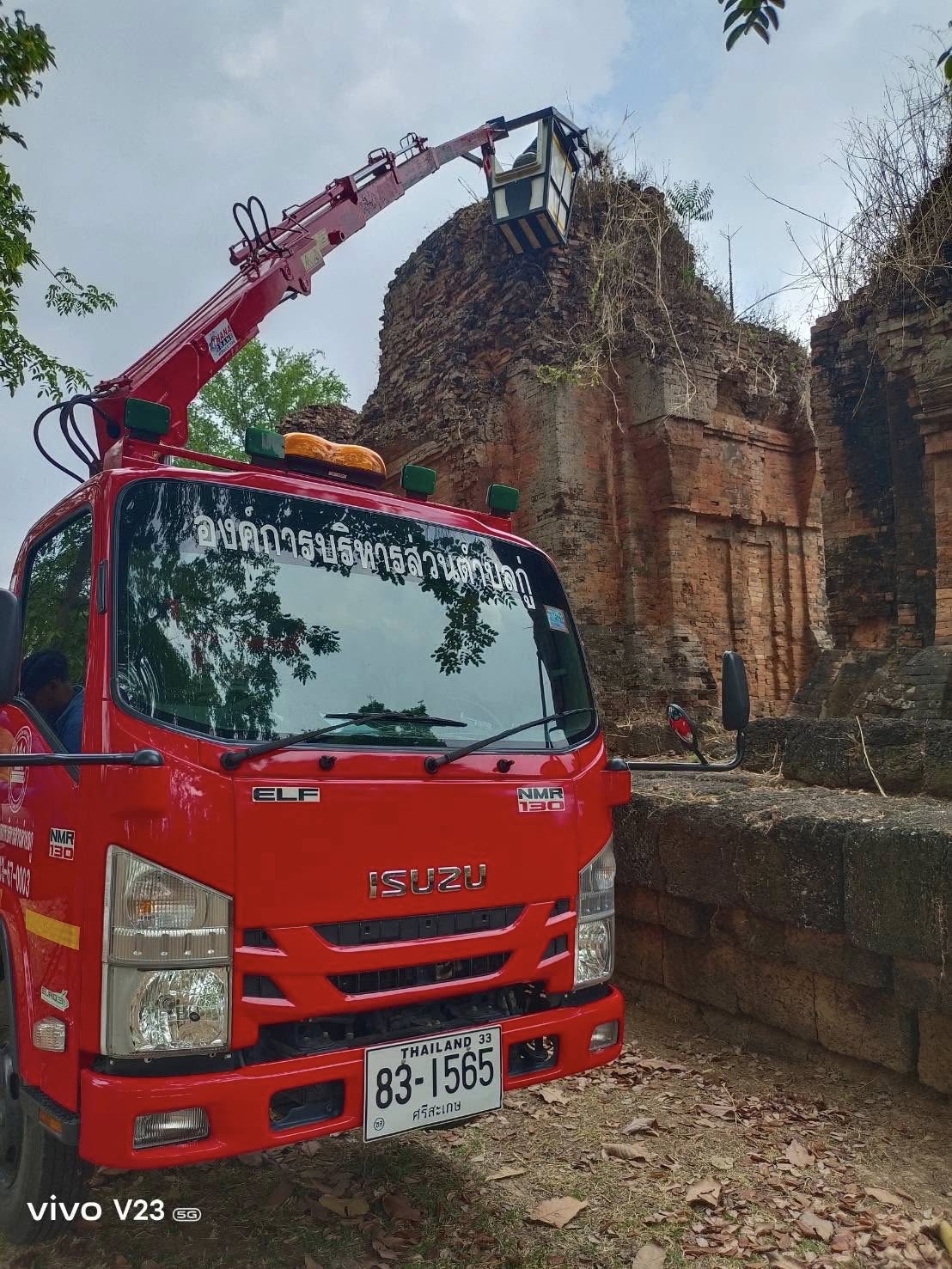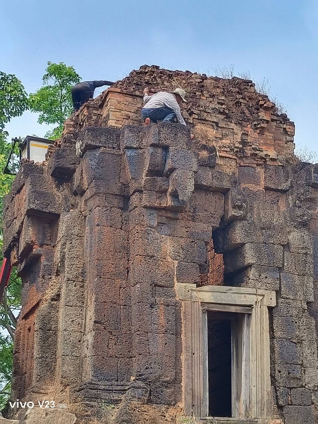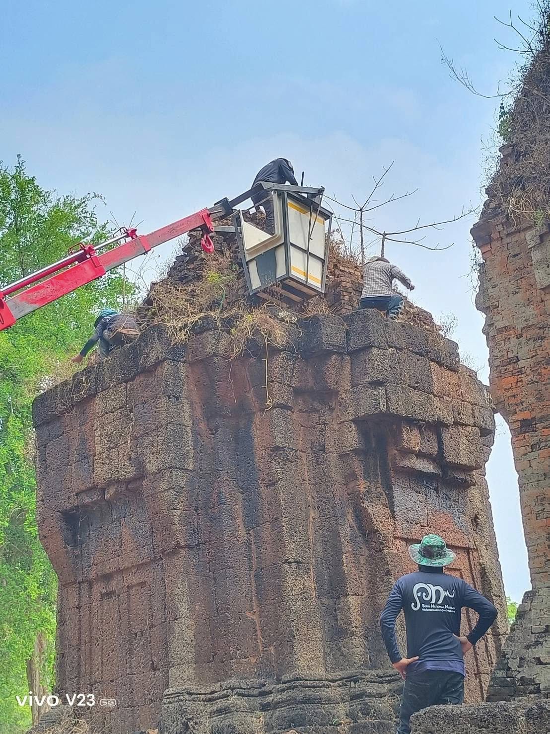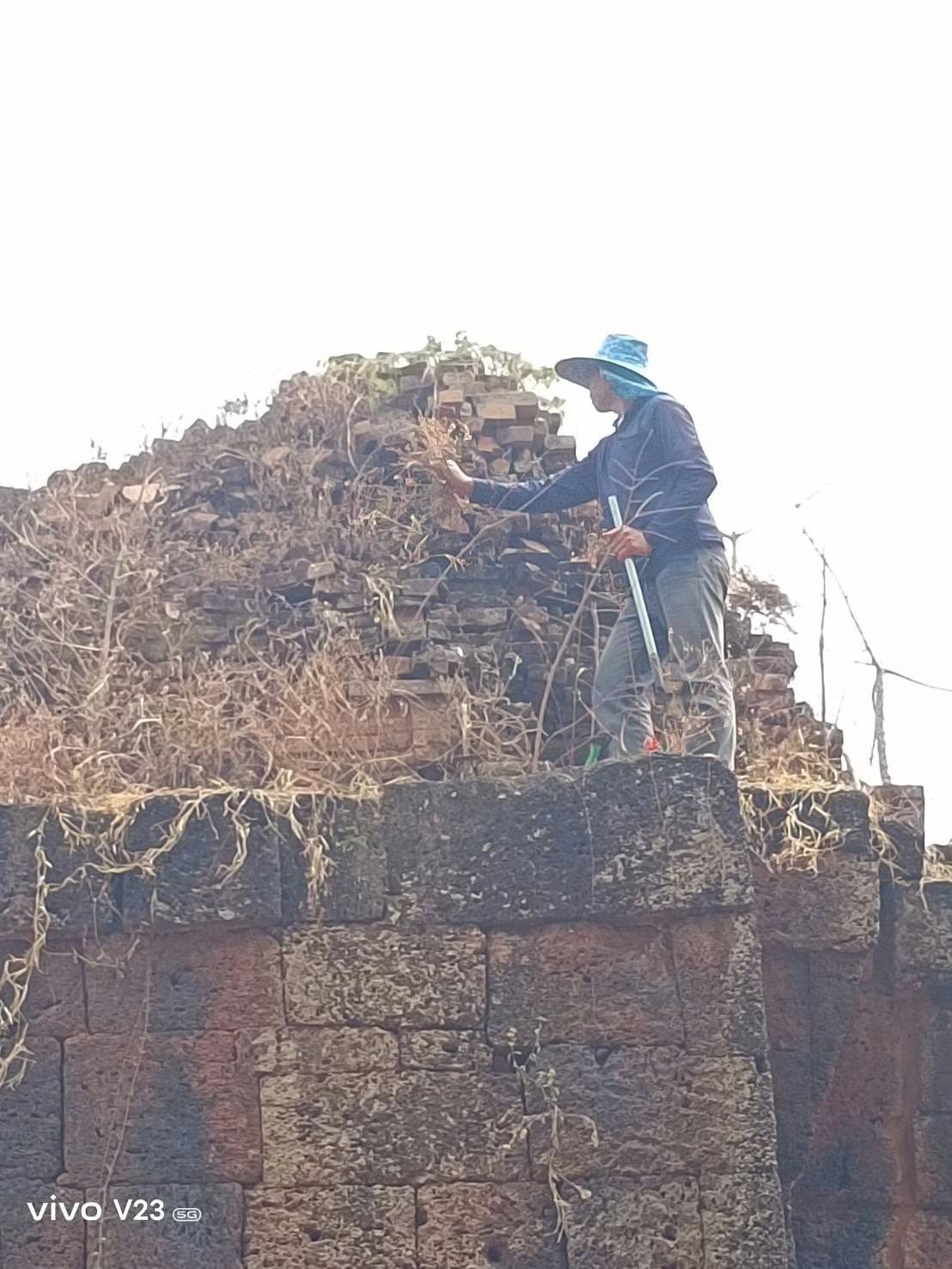 กำจัดต้นไม้และวัชพืชบนยอดโบราณสถานปราสาทปรางค์กู่