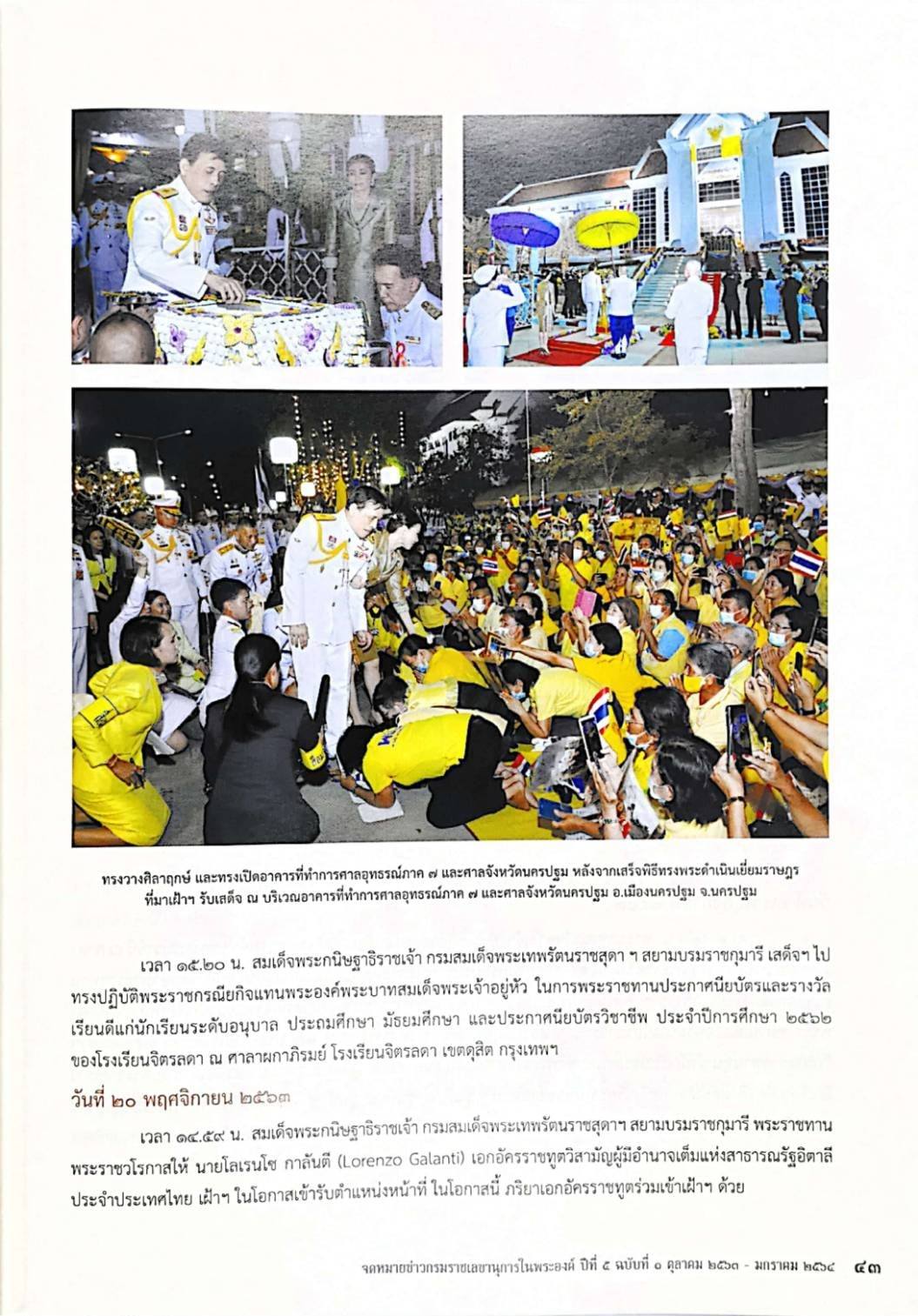 เนื้อหาภายในหนังสือ : คณะผู้จัดทำได้รับพระราชทานพระบรมราชานุญาตให้เชิญพระราชดำรัสในโอกาสขึ้นปีใหม่ พุทธศักราช ๒๕๖๔ พระราชดำรัสในพิธีจุดเทียนมหามงคล กิจกรรมเนื่องในวันคล้ายวันพระราชสมภพพระบาทสมเด็จพระบรมชนกาธิเบศร มหาภูมิพลอดุลยเดชมหาราช บรมนาถบพิตร วันชาติ และวันพ่อแห่งชาติ บทความเกี่ยวกับโครงการในพระราชดำริ และพระราชกรณียกิจตั้งแต่เดือนกันยายน – ธันวาคม ๒๕๖๓ ทั้งนี้ เพื่อประโยชน์ต่อการศึกษาค้นคว้า