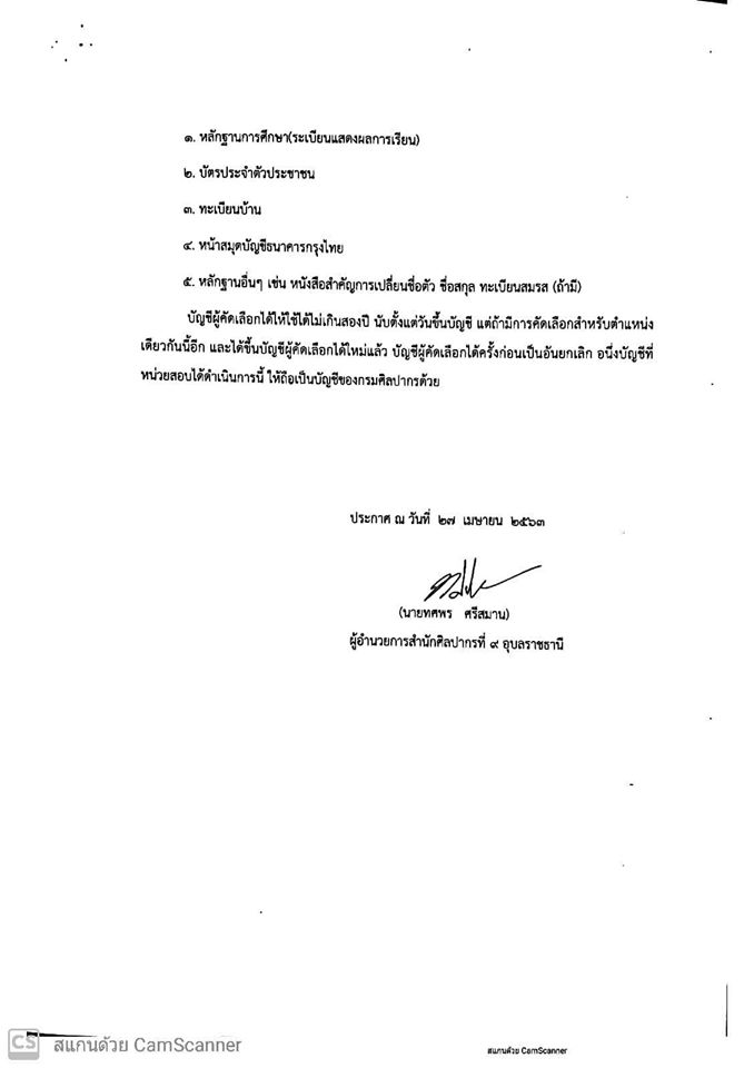 ประกาศรายชื่อผู้ผ่านการคัดเลือกเพื่อจ้างบุคคลเป็นลูกจ้างชั่วคราว พิพิธภัณฑสถานแห่งชาติ อุบลราชธานี