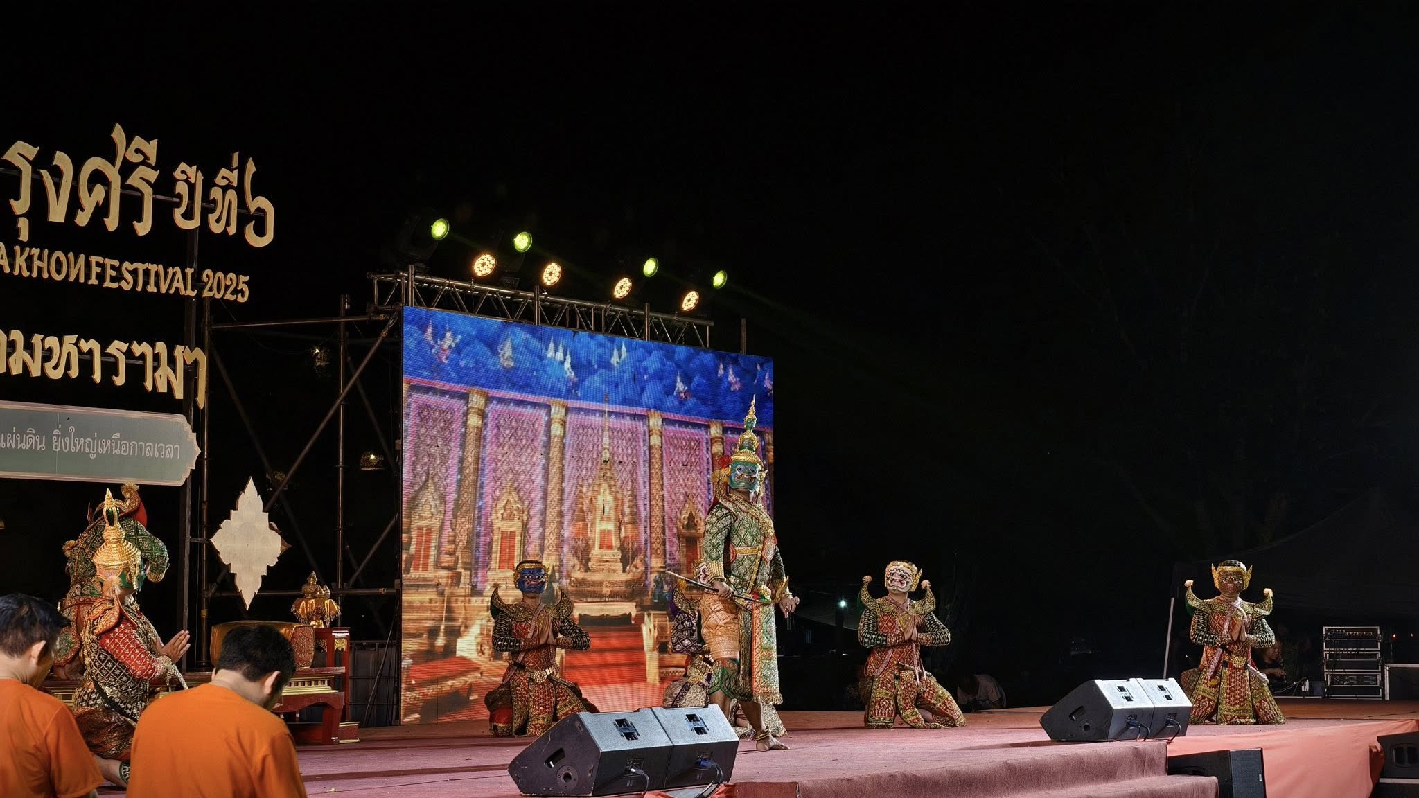 ภาพการแสดงโขน เรื่องรามเกียรติ์ ชุดศึกอสุรกำปั่น เนื่องในกิจกรรมการท่องเที่ยว "เทศกาลโขนกรุงศรี ปีที่ 6" ฉศกมหารามา ณ ลานหลังวัดมหาธาตุ อุทยานประวัติศาสตร์พระนครศรีอยุธยา จังหวัดพระนครศรีอยุธยา ในวันที่ ๒๖ เมษายน ๒๕๖๘
