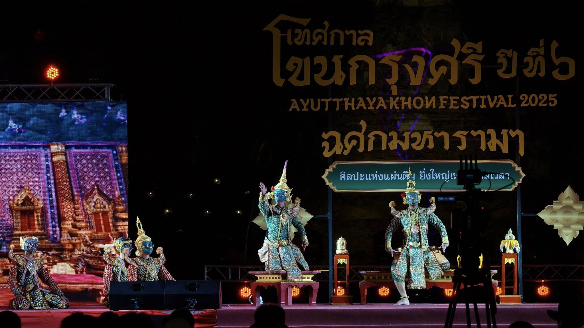 ภาพการแสดงโขน เรื่องรามเกียรติ์ ชุดศึกอสุรกำปั่น เนื่องในกิจกรรมการท่องเที่ยว "เทศกาลโขนกรุงศรี ปีที่ 6" ฉศกมหารามา ณ ลานหลังวัดมหาธาตุ อุทยานประวัติศาสตร์พระนครศรีอยุธยา จังหวัดพระนครศรีอยุธยา ในวันที่ ๒๖ เมษายน ๒๕๖๘