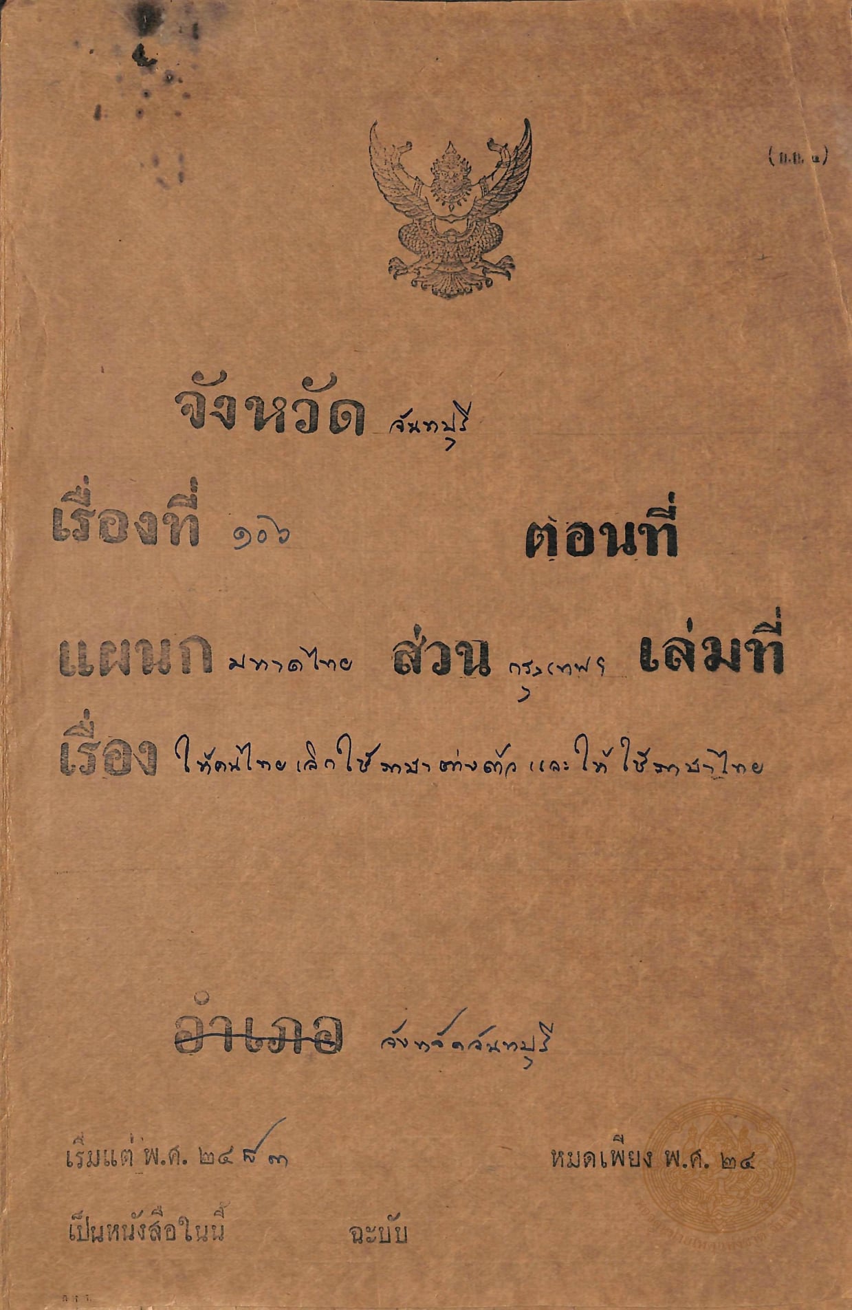 จดหมายเหตุ “ภาษาไทย สมัยจอมพล ป. พิบูลสงคราม”