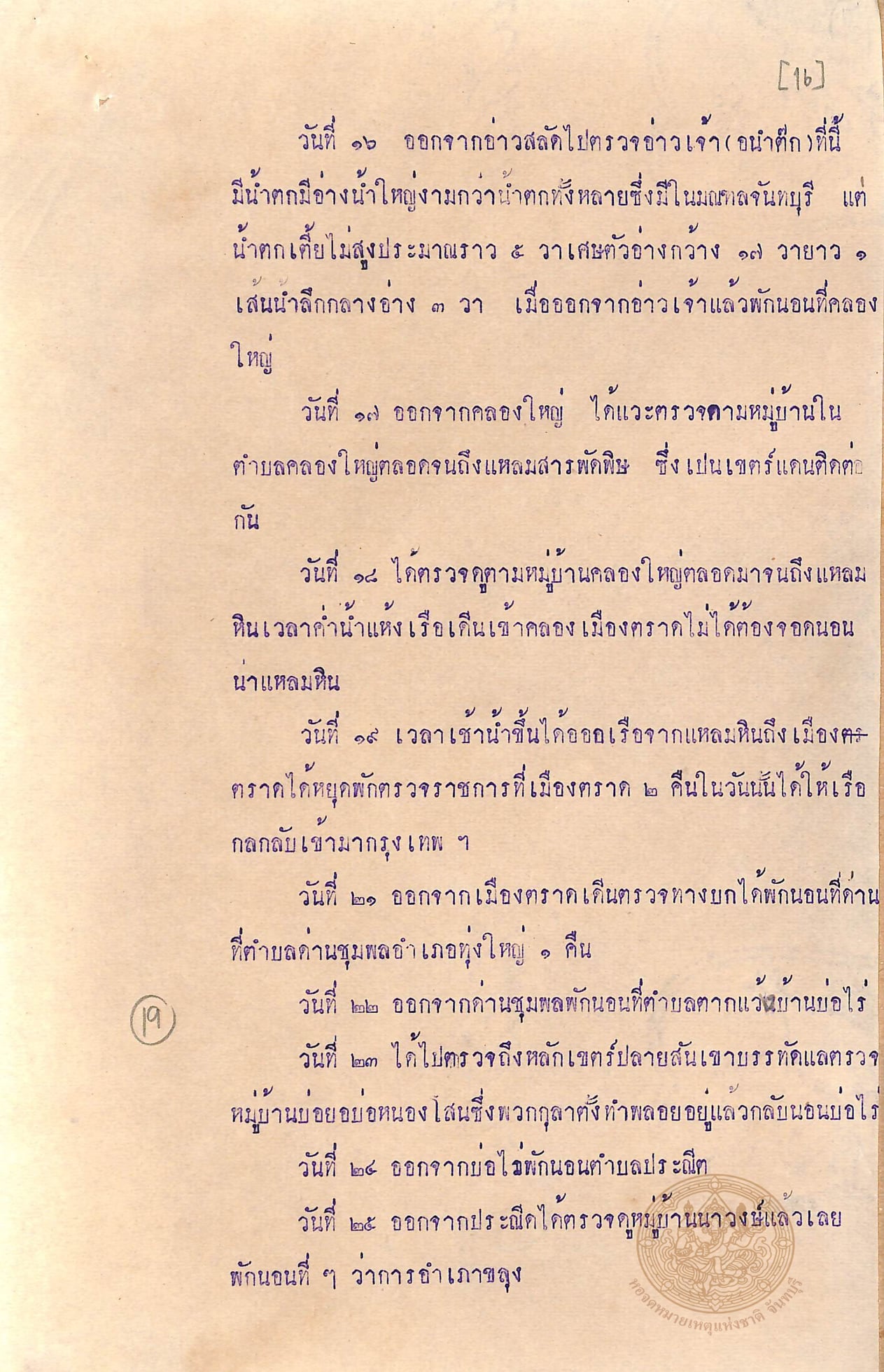 16 มีนาคม ตรวจอ่าวเจ้า น้ำตกที่นี่มีน้ำตกอ่างใหญ่งามกว่าน้ำตกในมณฑลจันทบุรี พักแรมที่คลองใหญ่