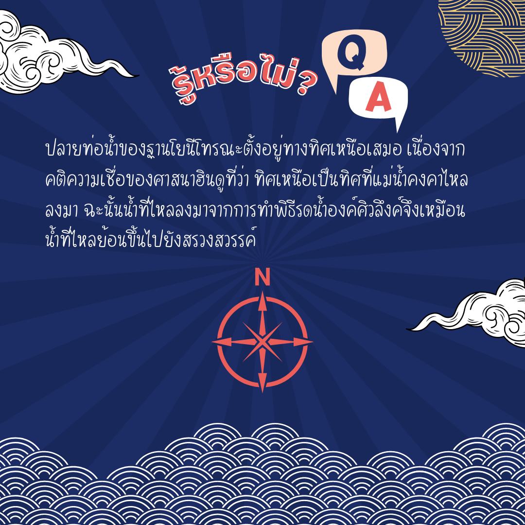 ปลายท่อน้ำของฐานโยนีโทรณะตั้งอยู่ทางทิศเหนือเสมอ เนื่องจากคติความเชื่อของศาสนาฮินดูที่ว่า ทิศเหนือเป็นทิศที่แม่น้ำคงคาไหลลงมา ฉะนั้นน้ำที่ไหลลงมาจากการทำพิธีรดน้ำองค์ศิวลึงค์จึงเหมือนน้ำที่ไหลย้อนขึ้นไปยังสรวงสวรรค์