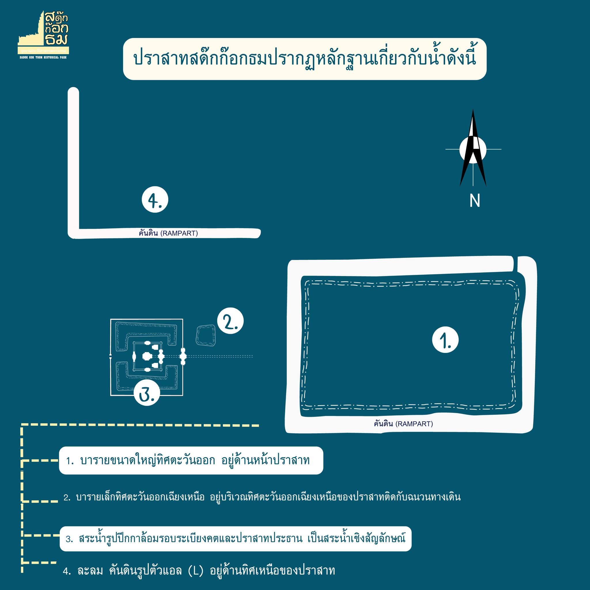 ปราสาทสด๊กก๊อกธมปรากฏหลักฐานเกี่ยวกับน้ำดังนี้