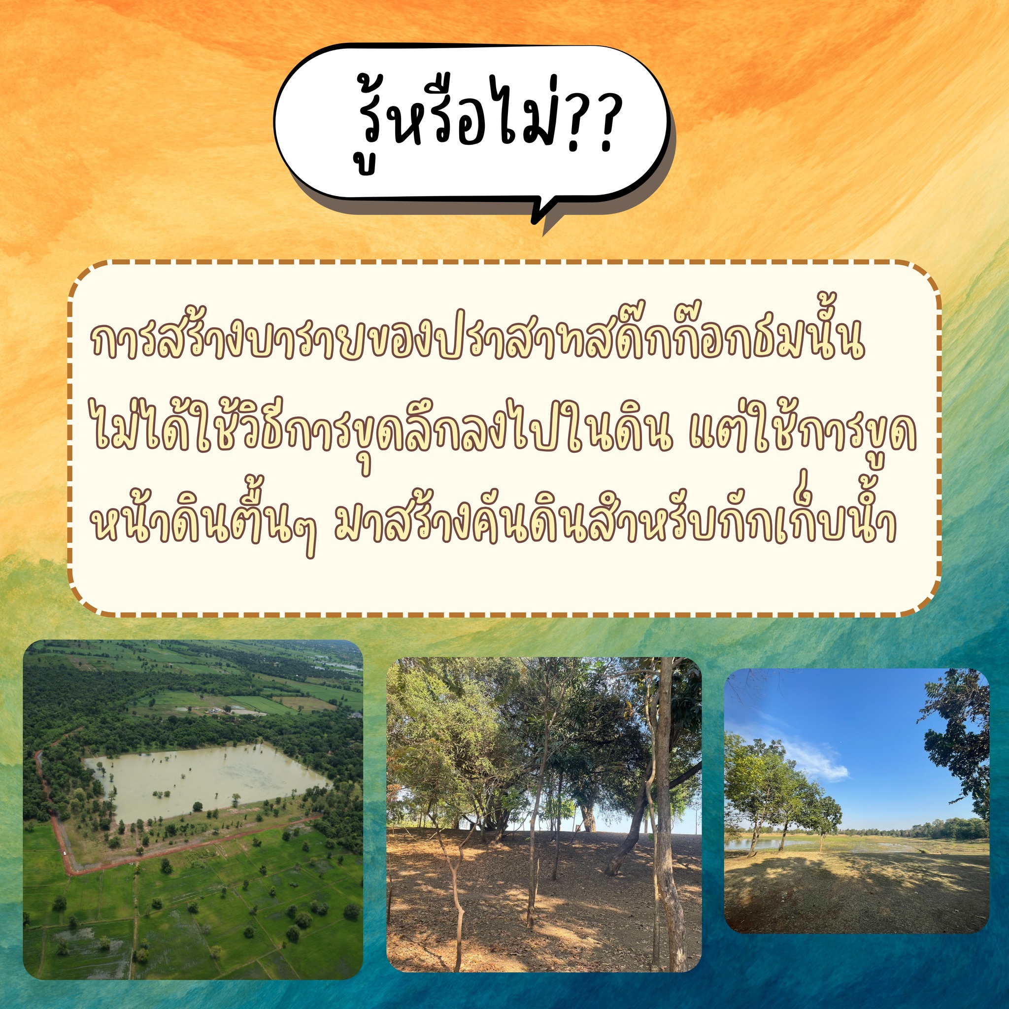 การสร้างบารายของปราสาทสด๊กก๊อกธมนั้น ไม่ได้ใช้วิธีการขุดลึกลงไปในดิน แต่ใช้การขูดหน้าดินตื้นๆ มาสร้างคันดินสำหรับกักเก็บน้ำ