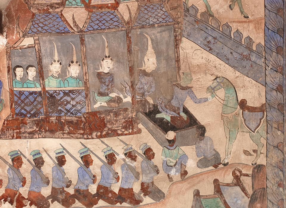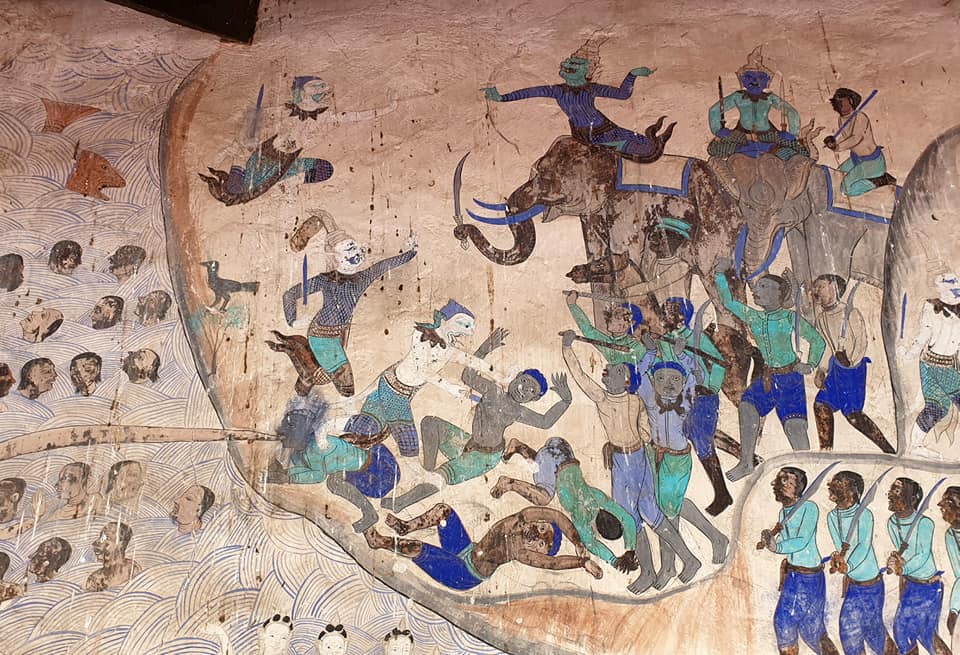 *การเสนอจิตรกรรมเล่าเรื่องราวพะลามชาดกที่ปรากบนผนังนั้น ช่างเขียนได้เขียนเล่าเรื่องราวถึงแค่การรบของกองทัพพะลามและฮาบมะสวนเพื่อแย่งชิงนางสีดาเพียงเท่านั้น